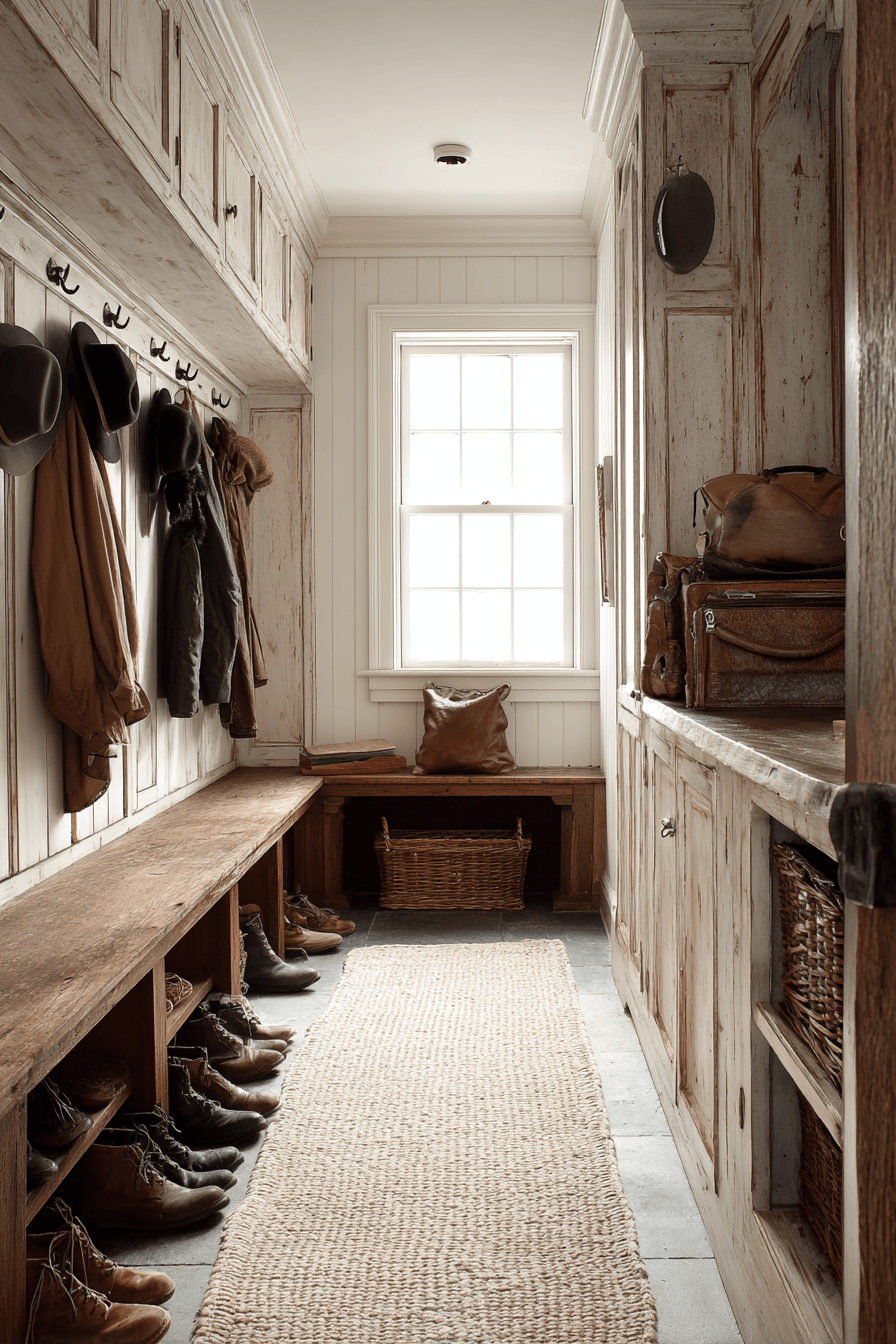 Mudrooms thrive when antique farmhouse decor shapes their storage solutions. Vintage benches, rustic lockers, and timeworn hooks manage clutter gracefully. These pieces balance practicality with personality. Daily routines feel more organized and intentional. A welcoming mudroom sets the tone for the home.