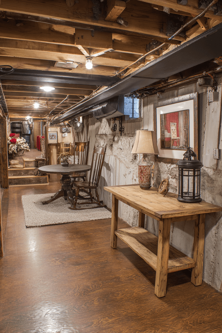 Basements transform with antique farmhouse decor when salvaged pieces are introduced. Vintage furniture and reclaimed shelving add warmth and texture. These details connect the basement to the rest of the home. The space feels intentional rather than overlooked. Comfort grows from character.