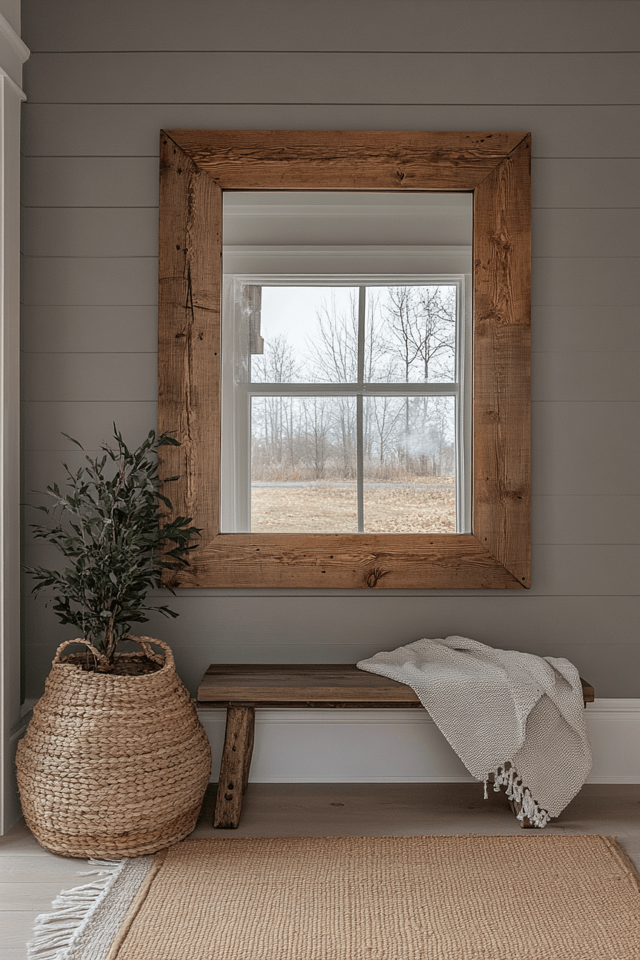 Mirrors framed in aged wood elevate antique farmhouse decor with texture and visual depth. Distressed finishes and handcrafted details enhance authenticity. Light reflects softly, making rooms feel more open and inviting. Each mirror carries subtle imperfections that add character. Walls feel complete with these thoughtful accents.