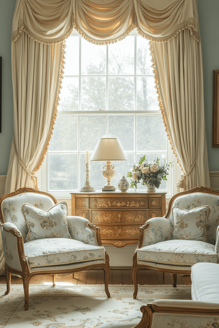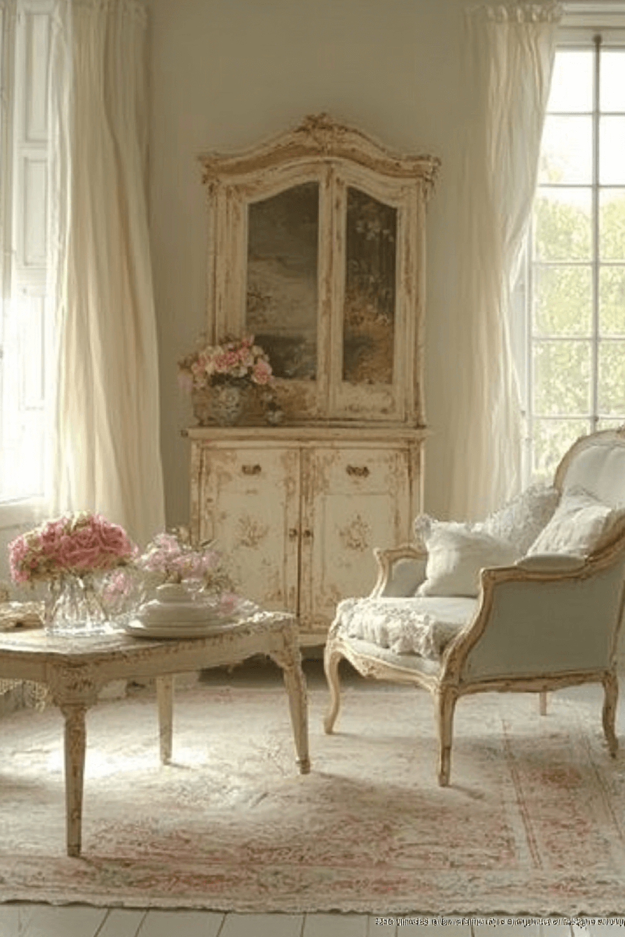 French provincial accents soften an antique interior with graceful curves and romantic finishes. Carved wood, linen upholstery, and muted pastels balance rustic charm with elegance. Floral patterns and distressed textures add warmth. Wrought iron lighting enhances authenticity beautifully. These elements create spaces that feel inviting yet refined. Tap to infuse your antique interior with French countryside allure!