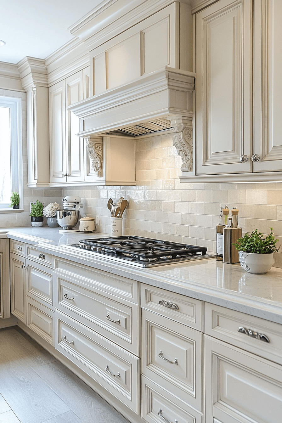 Timeless appeal becomes easy to achieve by blending tradition and freshness through antique white kitchen cabinets. Their familiar silhouette offers comfort, while the bright finish keeps the space feeling current. Light tones refresh the room and invite openness. This balance ensures lasting visual interest. Homeowners appreciate the versatility this look provides.