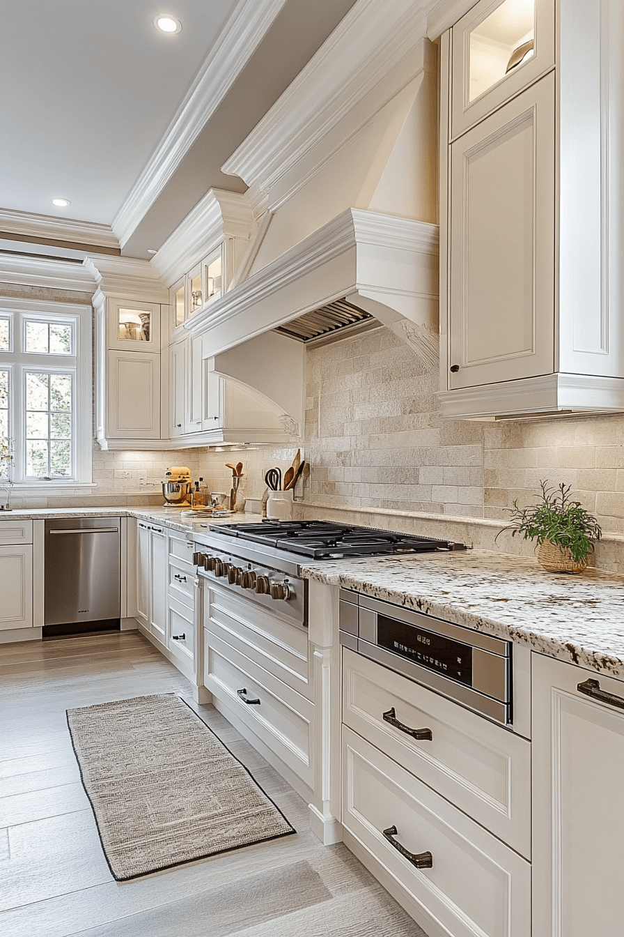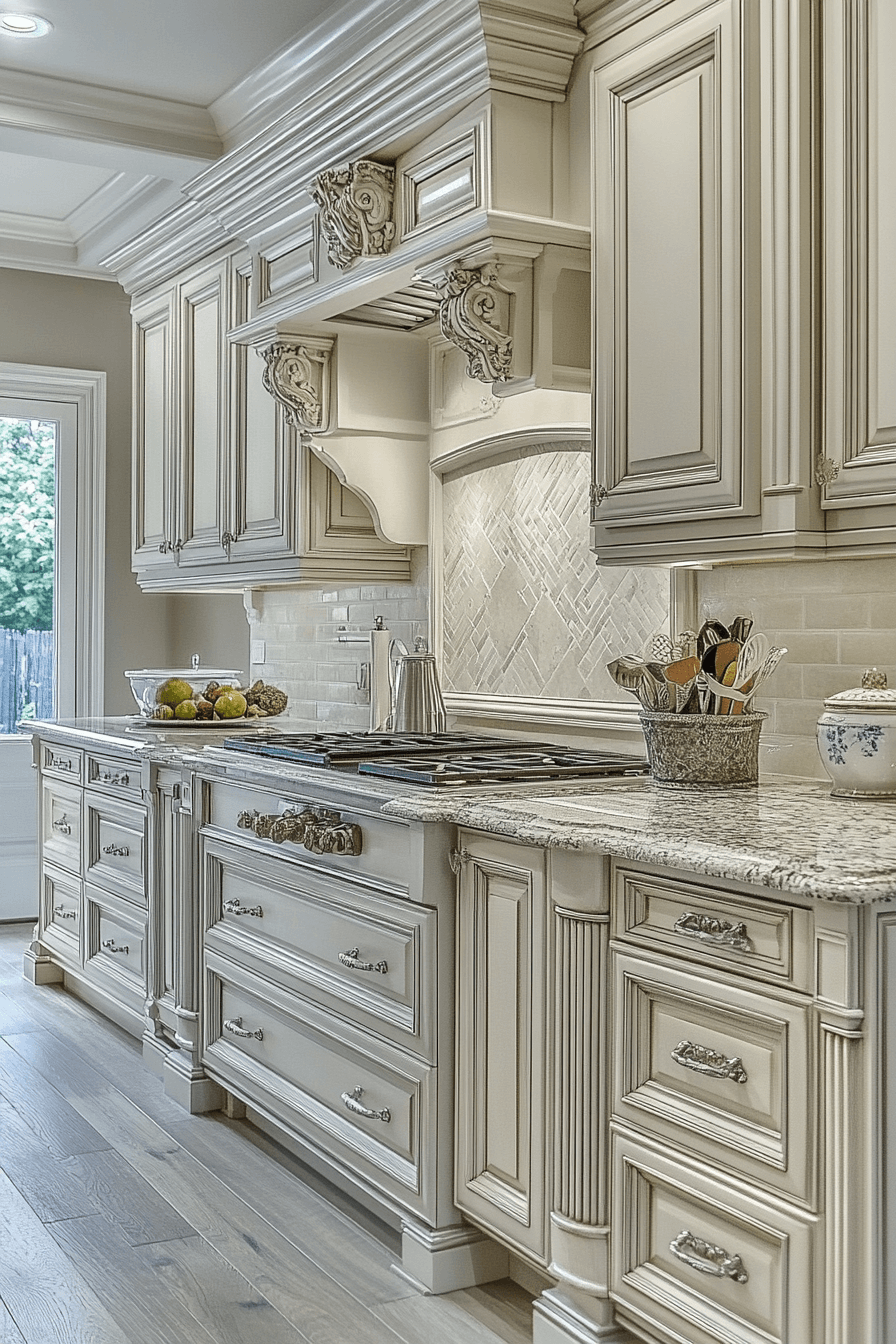 Quiet elegance takes shape through antique white kitchen cabinets that elevate the room without demanding attention. Their understated beauty brings refinement while allowing the space to breathe. Antique accents introduce visual interest without clutter. The kitchen remains open, approachable, and effortlessly stylish. This design suits those who love subtle sophistication.