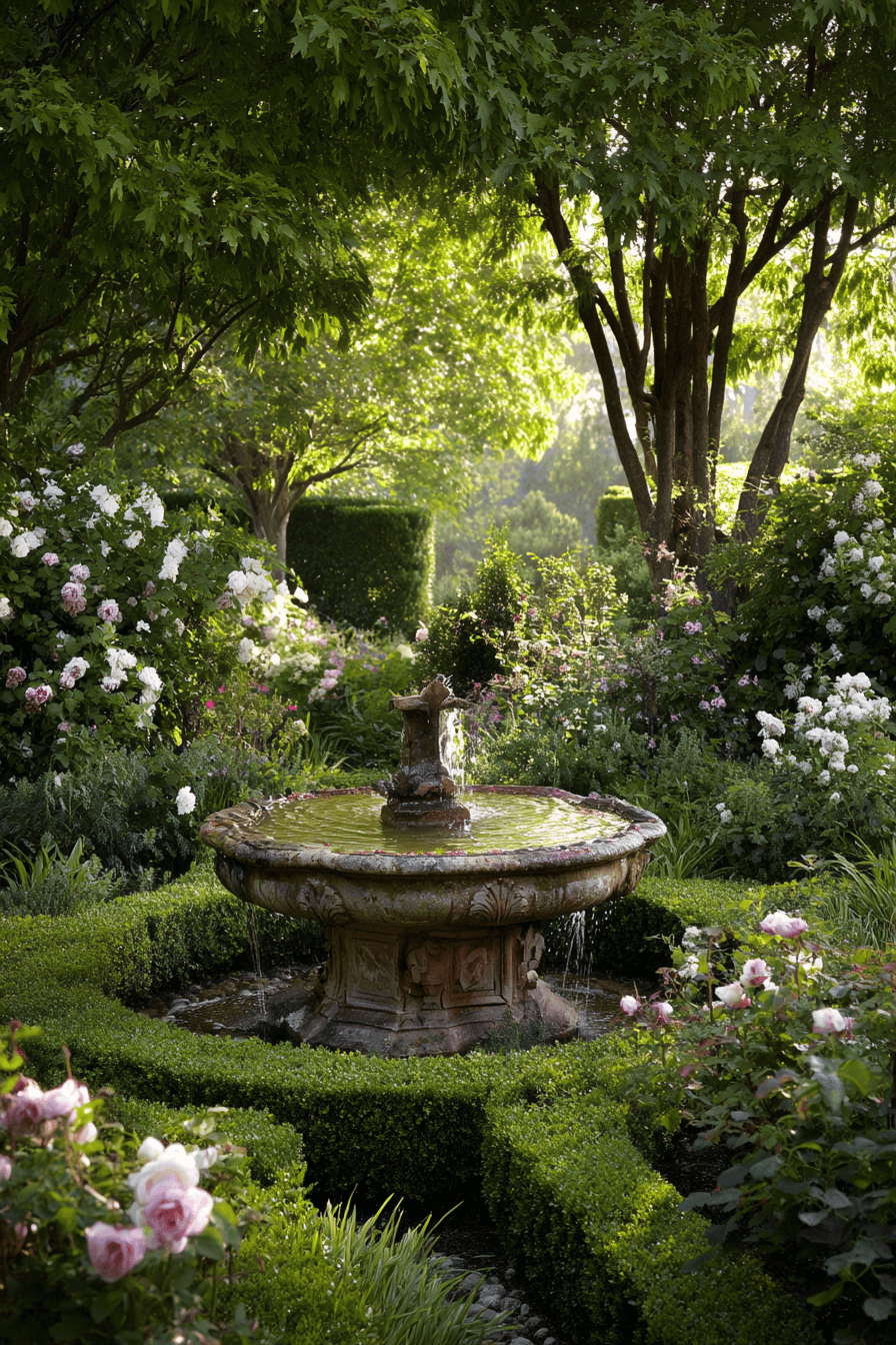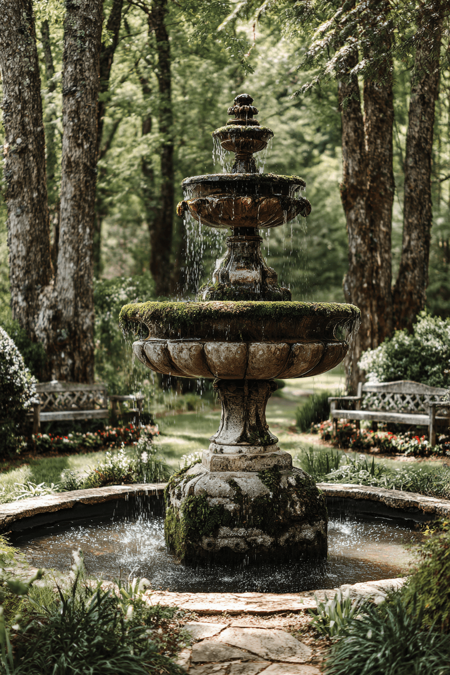 8. Vintage Garden Fountain Focus
