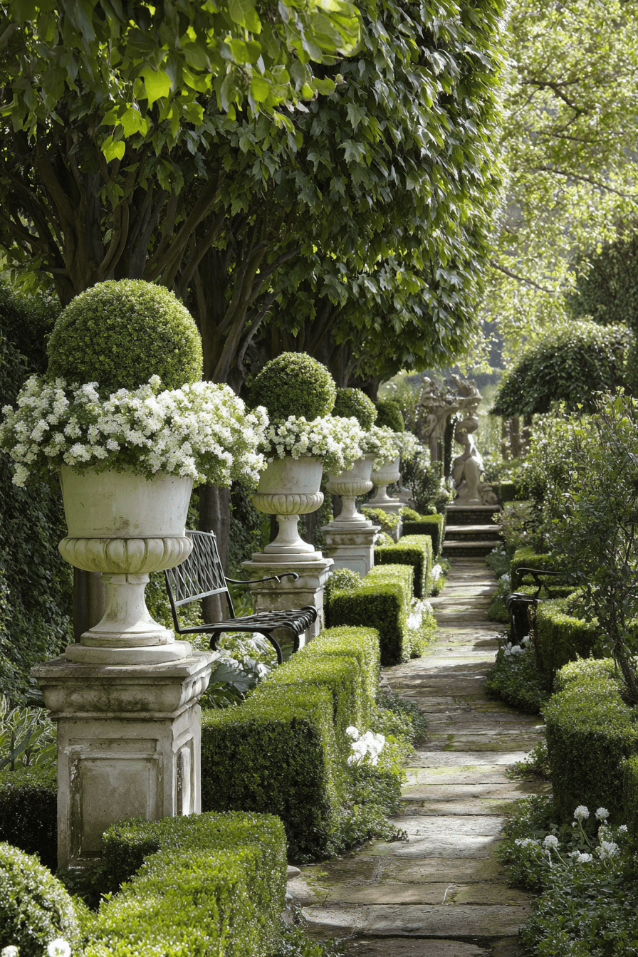 Greenery becomes sculpture when antique yard decor ideas embrace Renaissance-inspired topiary designs. Structured shapes add rhythm and balance to planting layouts. Formal symmetry complements softer garden elements. Each topiary guides the eye with intention. Living art takes center stage.