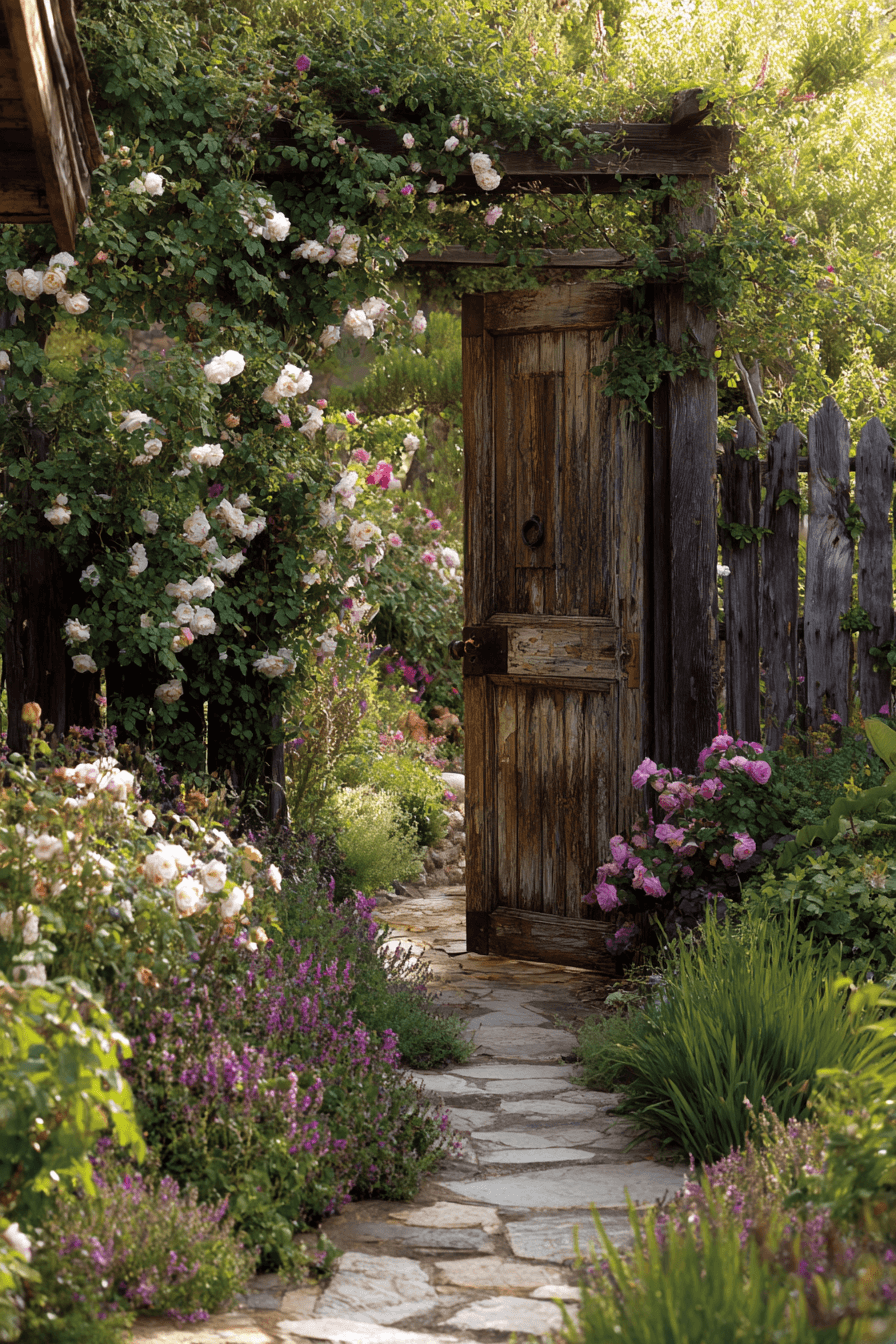 Storybook entrances appear when antique yard decor ideas repurpose salvaged doors as garden gates. Chipped paint and aged hardware add texture and history. Vines frame the opening naturally. Each doorway feels symbolic and welcoming. Sustainability meets storytelling beautifully here.