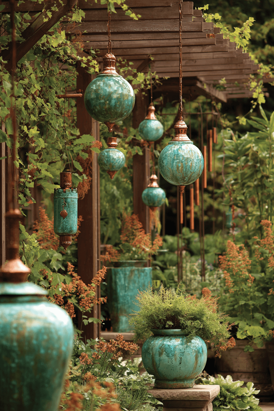 25. Weathered Copper Garden Accents