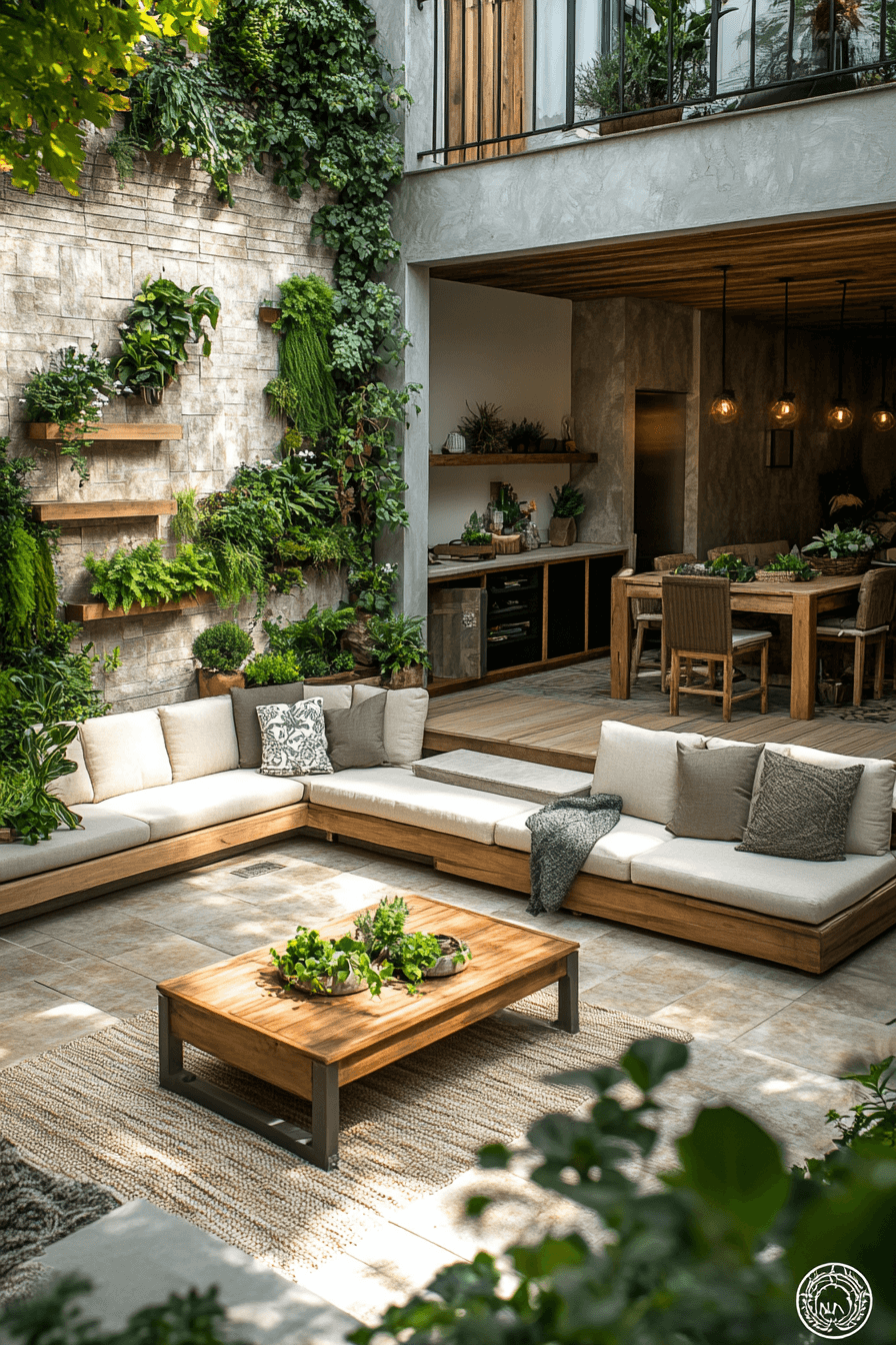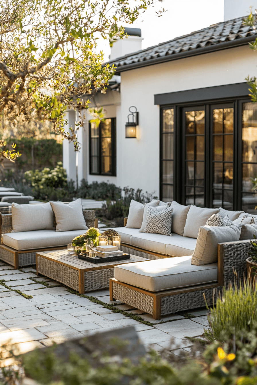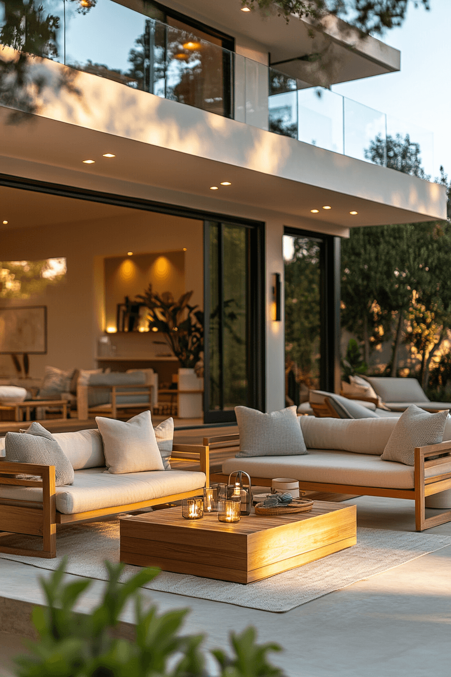 Modern patio styling reimagines backyard decor as a polished retreat filled with clean lines, soft neutrals, and inviting outdoor seating that feels effortlessly refined. Smooth concrete underfoot pairs beautifully with light wood accents and low-profile furniture to create a calm foundation. Plush cushions and subtle patterned textiles introduce warmth without disrupting the minimalist vibe. Discreet lighting like recessed fixtures or sleek lanterns gently enhances the mood after sunset. Carefully curated accents keep everything cohesive and uncluttered. The result feels serene, elevated, and undeniably stylish. Get inspired to design your own sleek outdoor escape today!