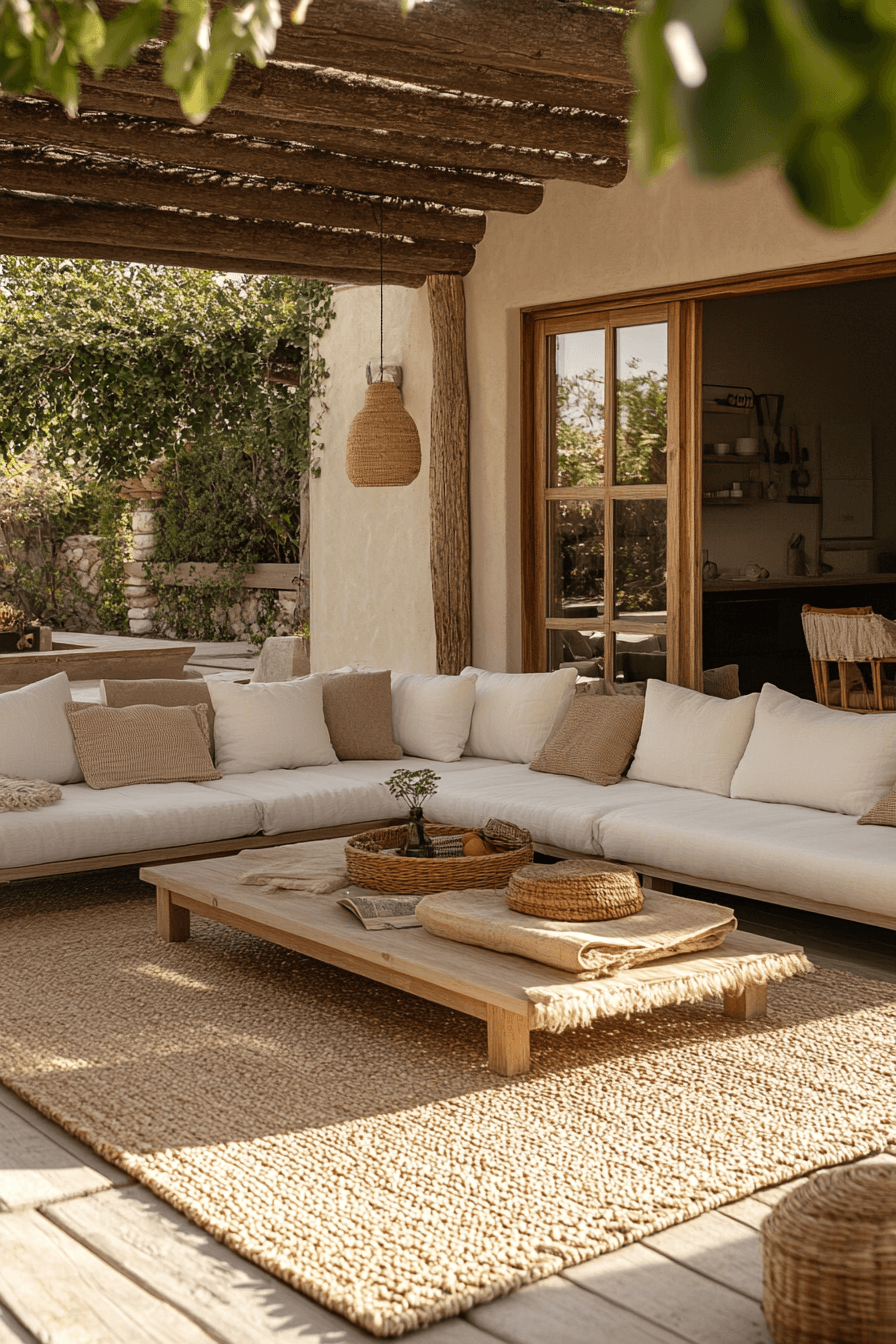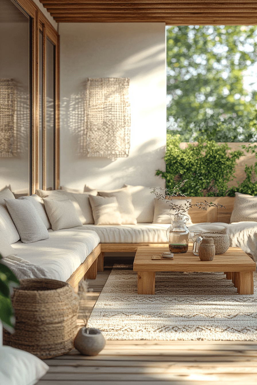 Neutral outdoor styling keeps backyard decor timeless with soft tones and a clean, cohesive design that feels effortlessly calm. Shades of beige, cream, and light wood create a soothing palette. Minimalist furniture keeps the space open and uncluttered. Layered textures add subtle depth without overpowering the design. Natural light enhances the airy feel. The overall look feels relaxed and refined. Refresh your outdoor space with this timeless aesthetic!