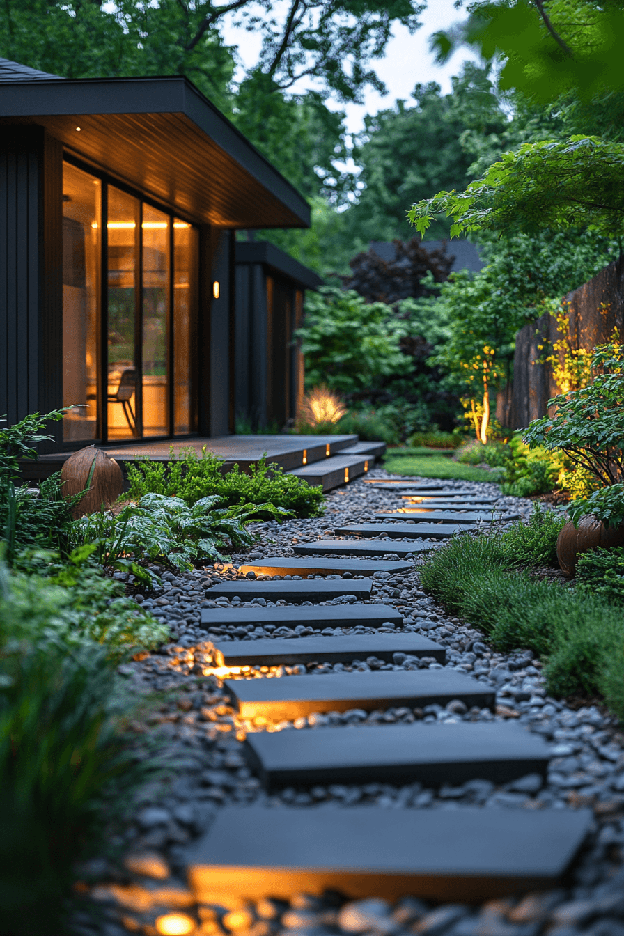 Garden pathway design enhances backyard decor with structured flow and visually pleasing movement throughout the space. Stone or wood paths create a clear and stylish direction. Surrounding textures soften the edges beautifully. Lighting highlights the pathway at night. The layout connects areas while adding depth. The result feels intentional and refined. Upgrade your outdoor flow with this idea!
