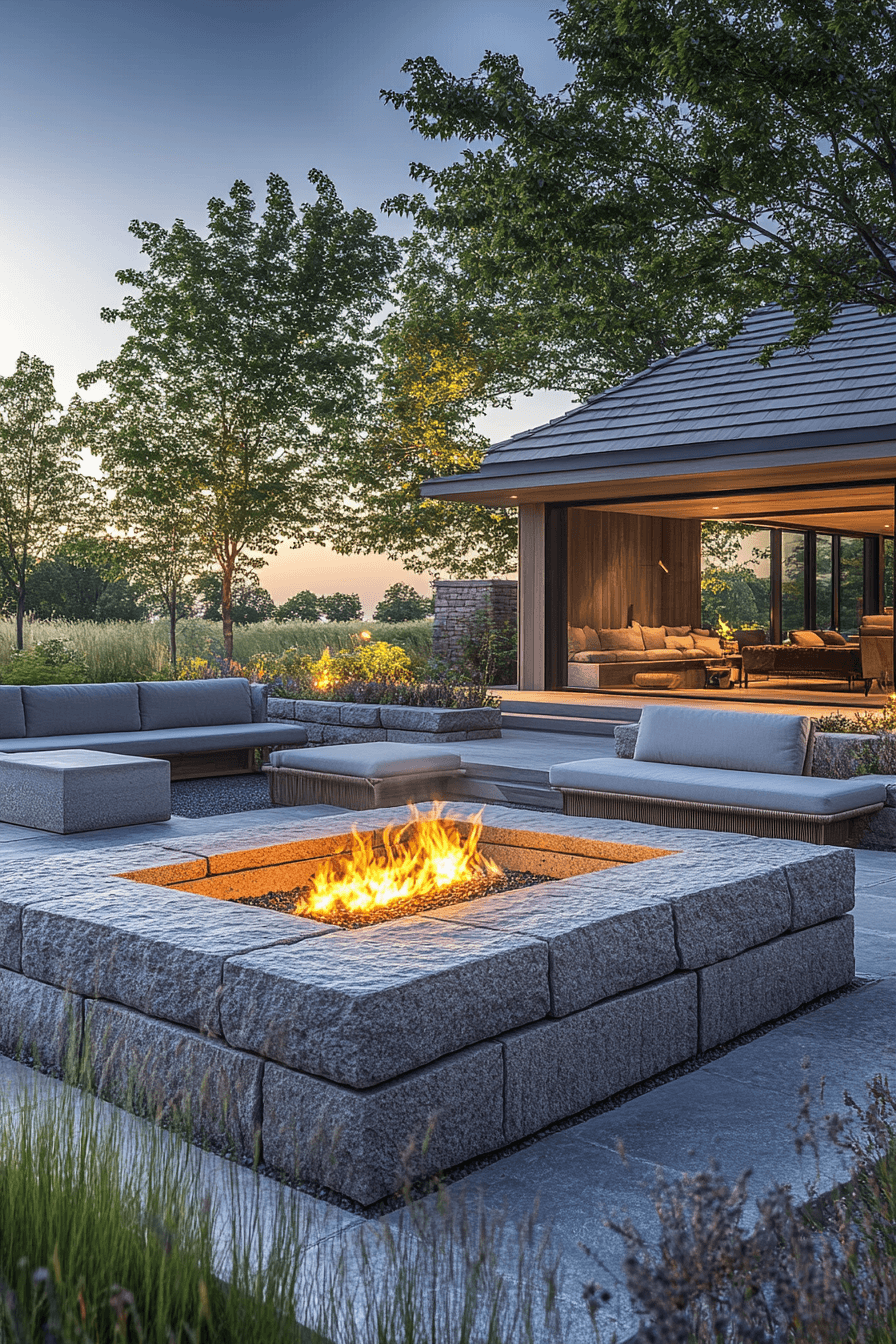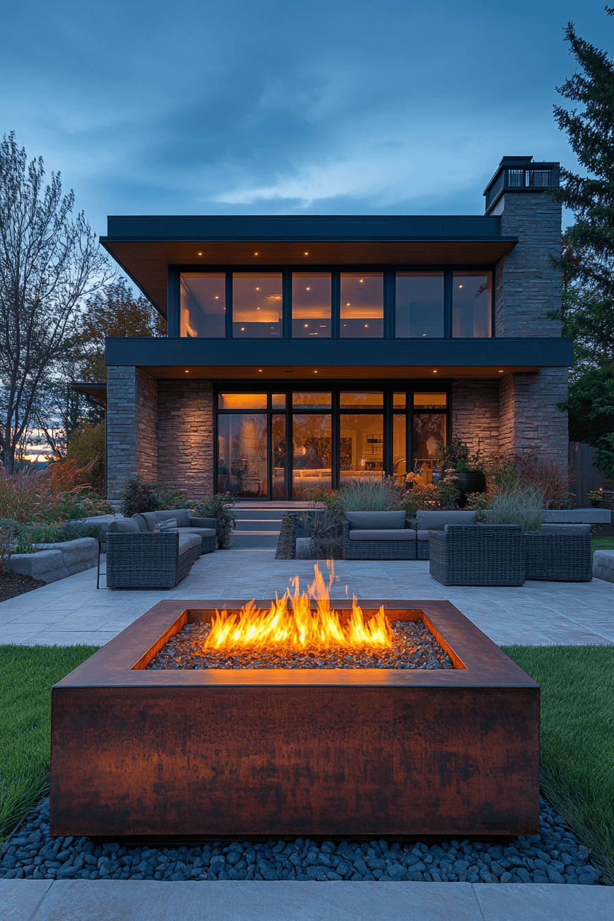 Sleek fire pit styling enhances backyard decor with a striking focal point that blends warmth and modern design seamlessly. Structured materials like concrete or steel pair with streamlined seating for a bold, contemporary look. Flickering flames contrast beautifully against cooler tones, adding depth and ambiance. Minimal accents keep attention on the centerpiece while maintaining a polished feel. The layout encourages gathering while staying organized and intentional. Everything feels stylish, functional, and visually captivating. Reimagine your outdoor gatherings with this bold feature!
