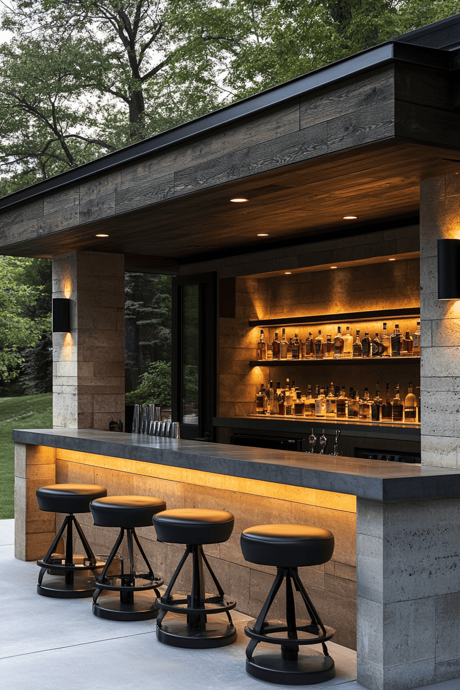 Backyard bar styling enhances backyard decor with a social and functional space designed for entertaining with ease. Sleek surfaces and organized storage create a polished look. Comfortable seating invites guests to gather and relax. Lighting and decor add personality and charm. The layout encourages interaction and flow. Everything feels fun and well-designed. Create your ultimate outdoor hangout now!
