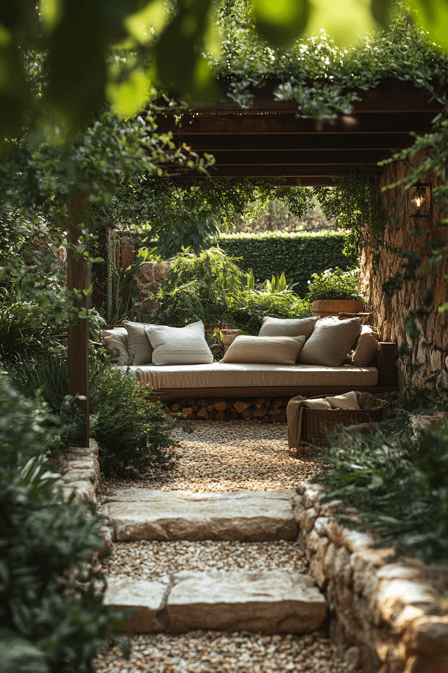 Private garden styling transforms backyard decor into a peaceful nook designed for quiet moments and relaxation. Tucked-away seating creates a sense of escape. Soft textures keep the space comfortable and calming. Subtle lighting adds warmth for evening use. Minimal decor maintains a clean, serene feel. The atmosphere feels intimate and soothing. Design your own peaceful corner today!