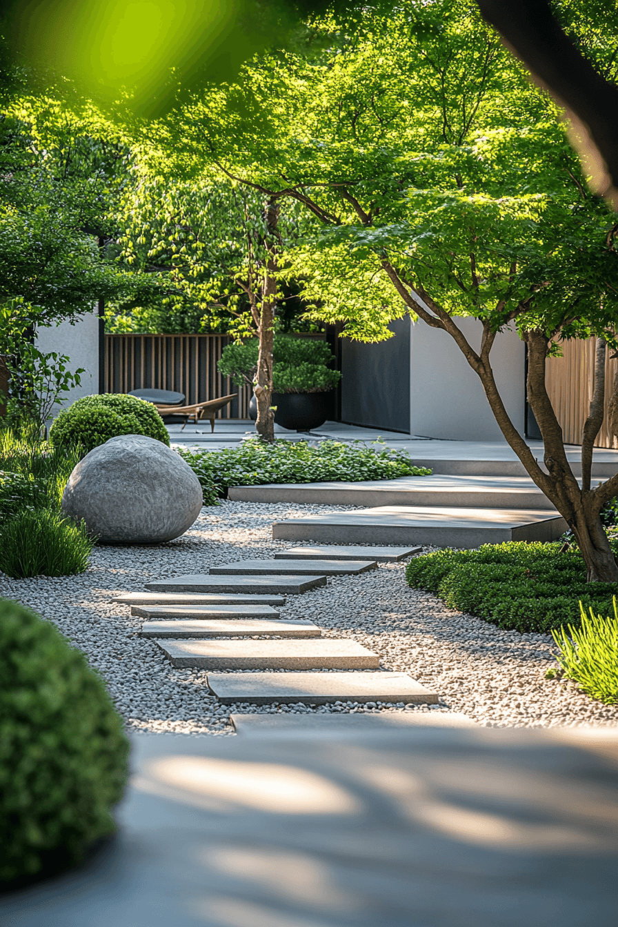 Minimalist garden design brings backyard decor into a refined and peaceful space where simplicity feels intentional and beautiful. Clean lines, subtle planters, and a limited color palette allow the layout to feel open and breathable. Natural materials like stone and pale wood introduce texture in a quiet, understated way. Spacious pathways and negative space enhance the sense of calm and openness. Carefully placed greenery adds life while maintaining balance. Every detail serves a purpose, resulting in a harmonious environment. Embrace this calming style for your own outdoor retreat!