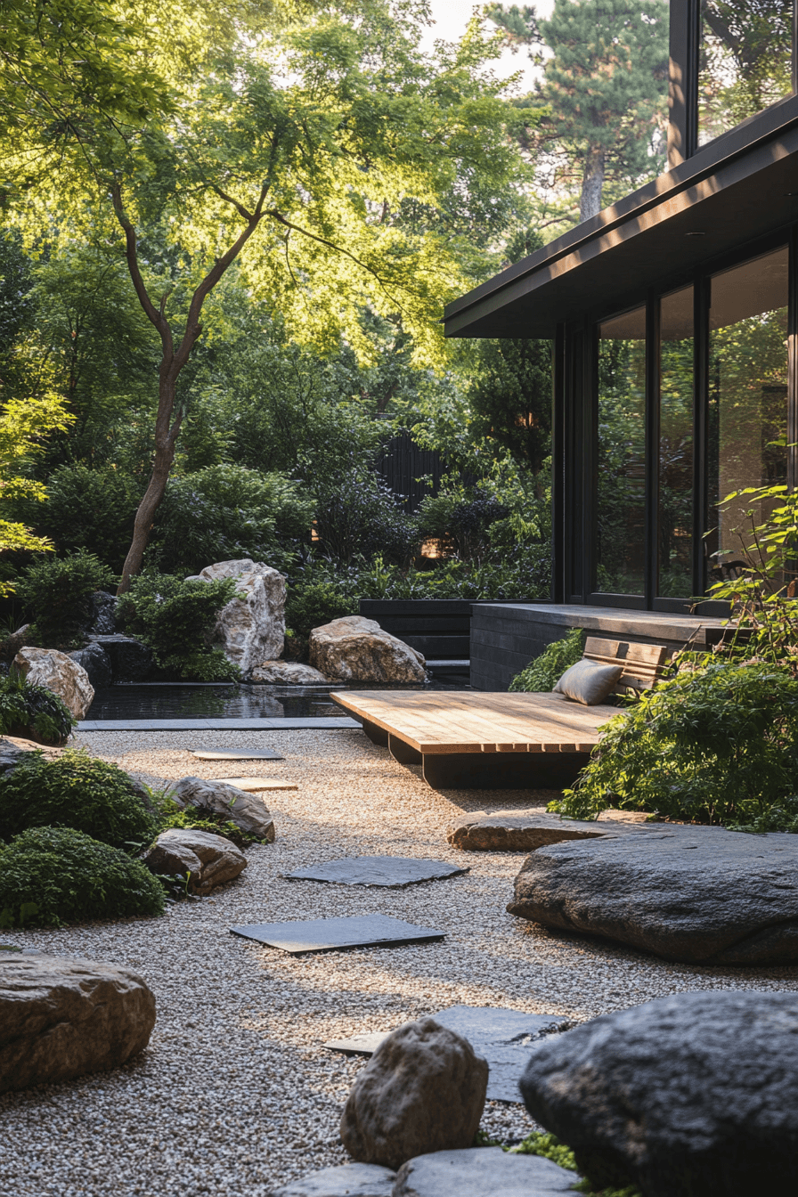 Zen-inspired styling transforms backyard decor into a serene sanctuary grounded in balance and calming textures. Stone pathways, gravel, and minimal greenery create a peaceful visual flow. Simple seating invites moments of quiet relaxation and reflection. Neutral tones and natural materials maintain a soothing, cohesive feel. Subtle accents like water features or sculptural stones add gentle interest. Every element is placed with intention to support tranquility. The atmosphere feels restorative and deeply calming. Bring peaceful energy into your outdoor space today!