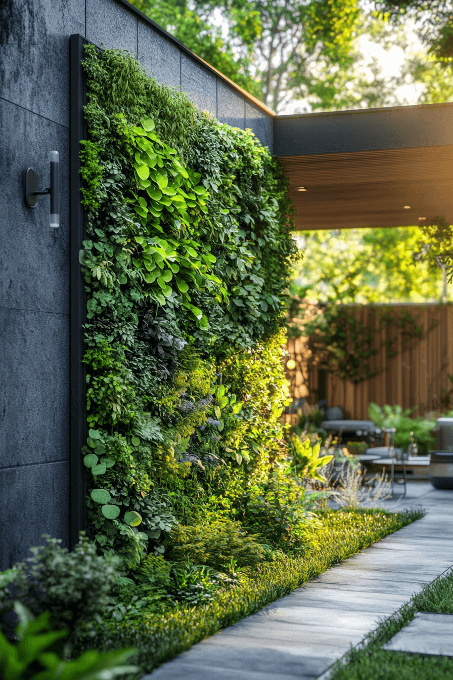 Green wall fencing blends backyard fence ideas with living elements for a vibrant and lush feature. Vertical greenery softens the structure. Plants add texture and color. Privacy improves naturally. Works well in eco-friendly designs. The space feels alive and refreshing. Bring greenery into your fence design today!
