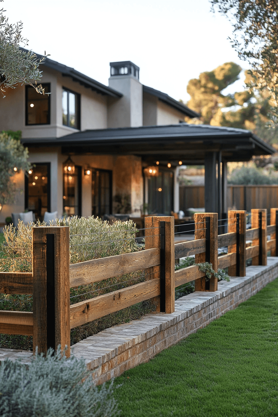 Modern farmhouse fencing blends rustic charm with updated backyard fence ideas for a warm yet refined look. Clean lines keep the design fresh. Wood and metal combinations add depth. Neutral tones create cohesion. Works in both rural and urban settings. The space feels inviting and timeless. Bring farmhouse style outdoors today!