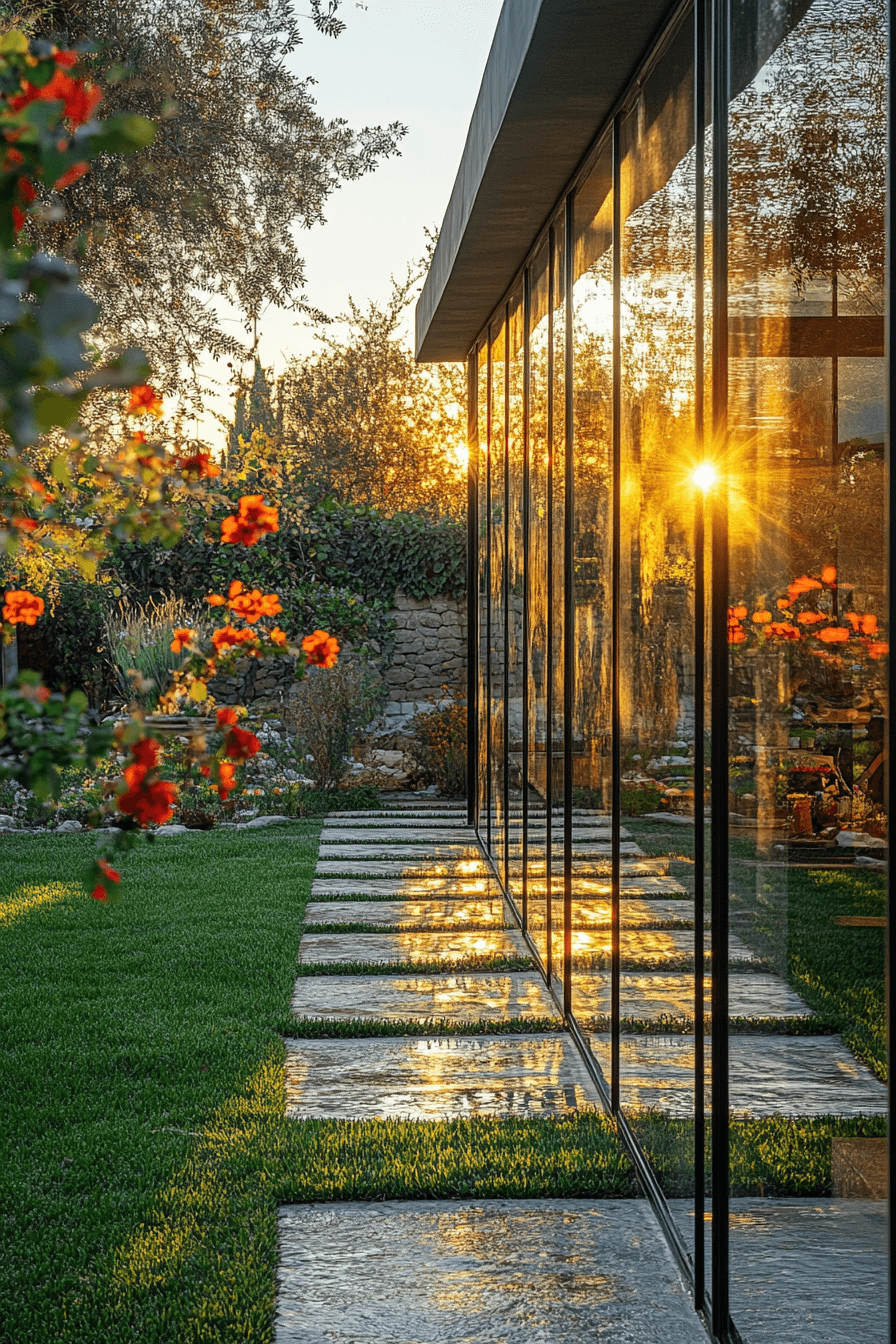 Glass panel fencing brightens backyard fence ideas by opening up views and allowing natural light to flow freely. Clear panels create a seamless connection with the surroundings. Minimal framing keeps the look refined and modern. Light reflects beautifully, making the space feel larger. Ideal for pools or scenic backyards. The overall vibe feels airy and luxurious. Bring openness into your outdoor design today!
