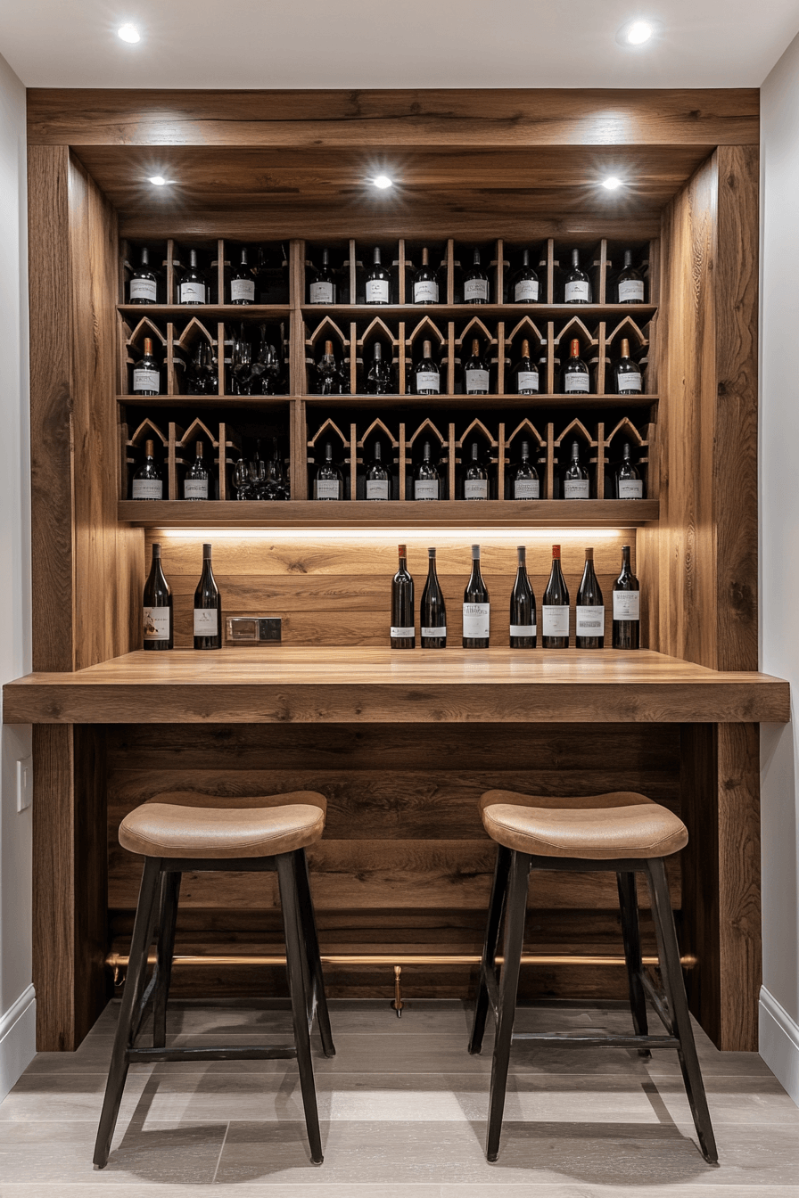Intimate elegance enhances basement bar ideas inspired by boutique wine tasting rooms, where soft lighting and curated storage create a warm environment. Comfortable seating encourages relaxed sipping and conversation. The design feels exclusive yet approachable. Every detail supports the tasting experience. This space feels thoughtfully curated. Discover wine tasting basement bar ideas with boutique appeal.