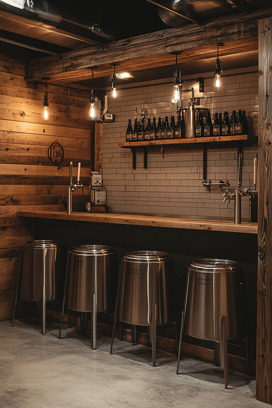 Hands-on creativity shines through basement bar ideas centered around home brewing and artisanal craftsmanship, where industrial materials and functional layouts support both hobby and hospitality. Durable surfaces, exposed metal details, and custom tap systems transform the bar into a true working space. Chalkboard menus and practical storage add flexibility and personality. The atmosphere feels authentic and purposeful rather than decorative. This design celebrates passion and experimentation. Explore home brewery basement bar ideas that blend creativity with function.