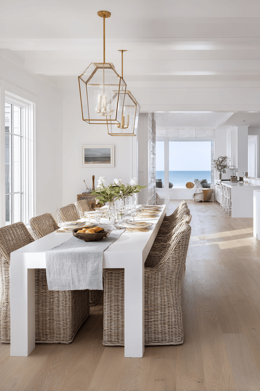 Coastal dining feels fresh and modern when sleek tables meet woven textures in beach house decor. Minimalist furniture pairs beautifully with linen runners and natural fiber chairs. The blend of simplicity and texture creates warmth. Soft lighting enhances the relaxed atmosphere. Keep tones light and cohesive. Tap to elevate your dining space with coastal elegance.
