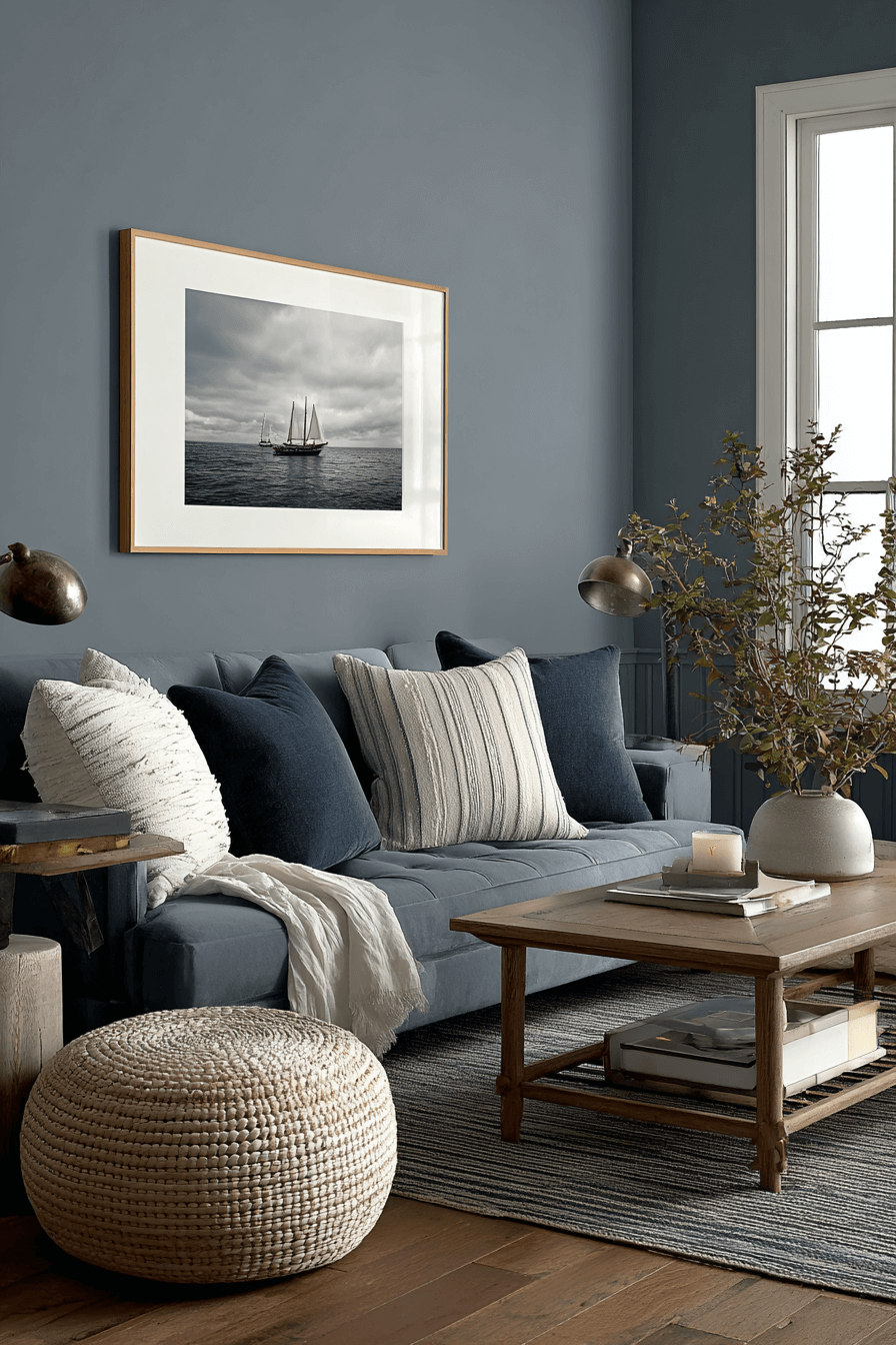 Harbor-inspired hues blend slate blue, muted gray, and crisp white into refined beach house decor. The palette feels sophisticated while honoring seaside roots. These tones reflect marina views and coastal mornings. Pair with streamlined furniture for a modern edge. Add subtle texture for warmth. Click to bring harbor elegance into your home.