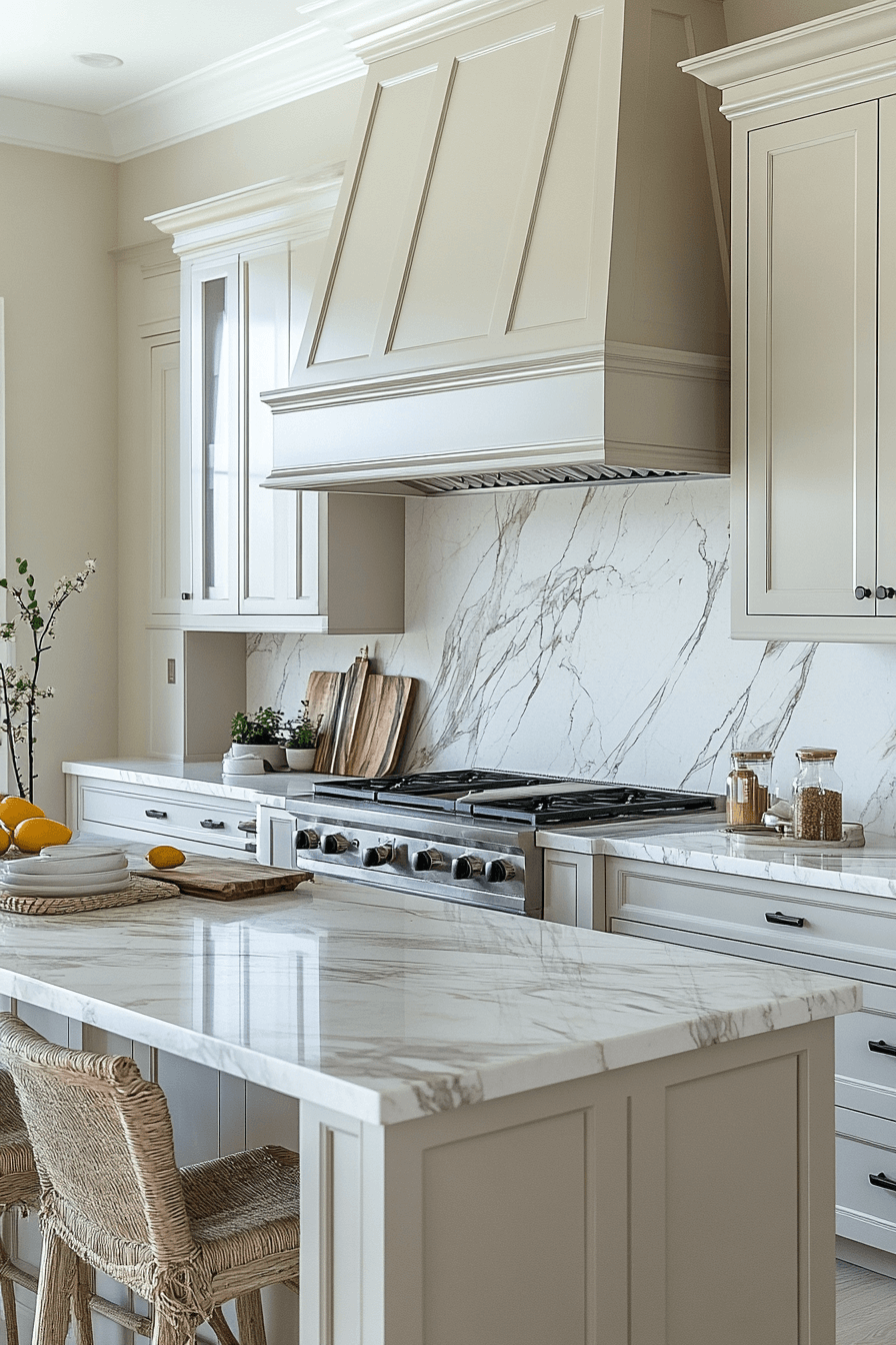 Luminous marble surfaces elevate a sophisticated beach house kitchen while preserving its relaxed vibe. Subtle veining mimics the movement of ocean waves. Paired with soft neutral cabinetry, the look feels polished yet breezy. Light bounces beautifully off the stone. It’s elegance layered with coastal calm. Tap to add marble glow to your kitchen.