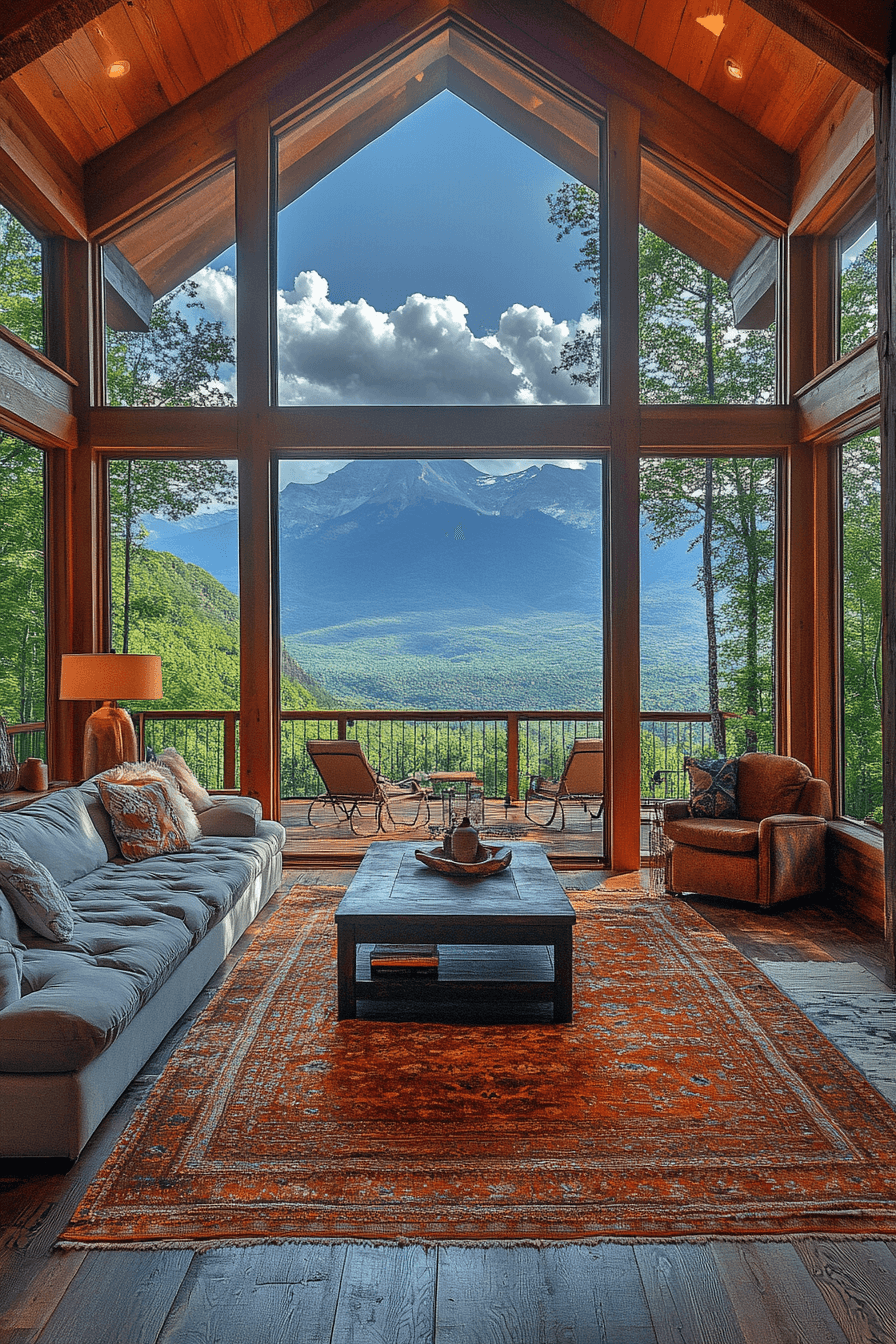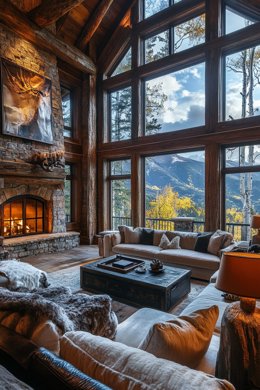 Large windows, warm color schemes, and thoughtful heating make cabin interiors ideal for high-altitude living. Every detail is aimed at comfort and style in challenging climates. It’s the ultimate mountain hideaway.