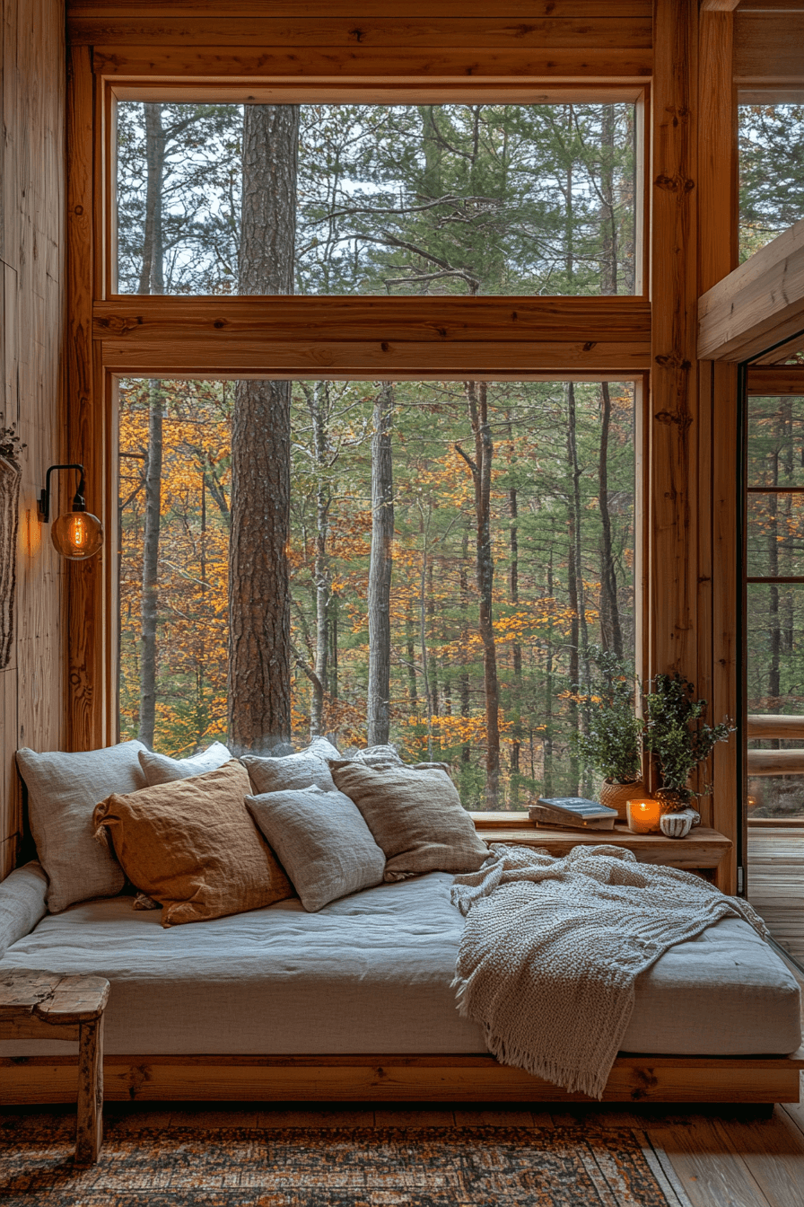 Soft neutrals, uncluttered spaces, and floor-to-ceiling windows make cabin interiors feel open and calming. Nature becomes part of the decor, with outdoor views filling each room. Ideal for anyone seeking simplicity in a natural setting.