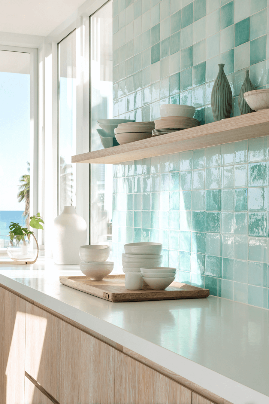 There’s something quietly luxurious about a backsplash you want to touch—matte aqua tile has that soft, almost suede-like quality that makes morning coffee feel like a spa ritual.