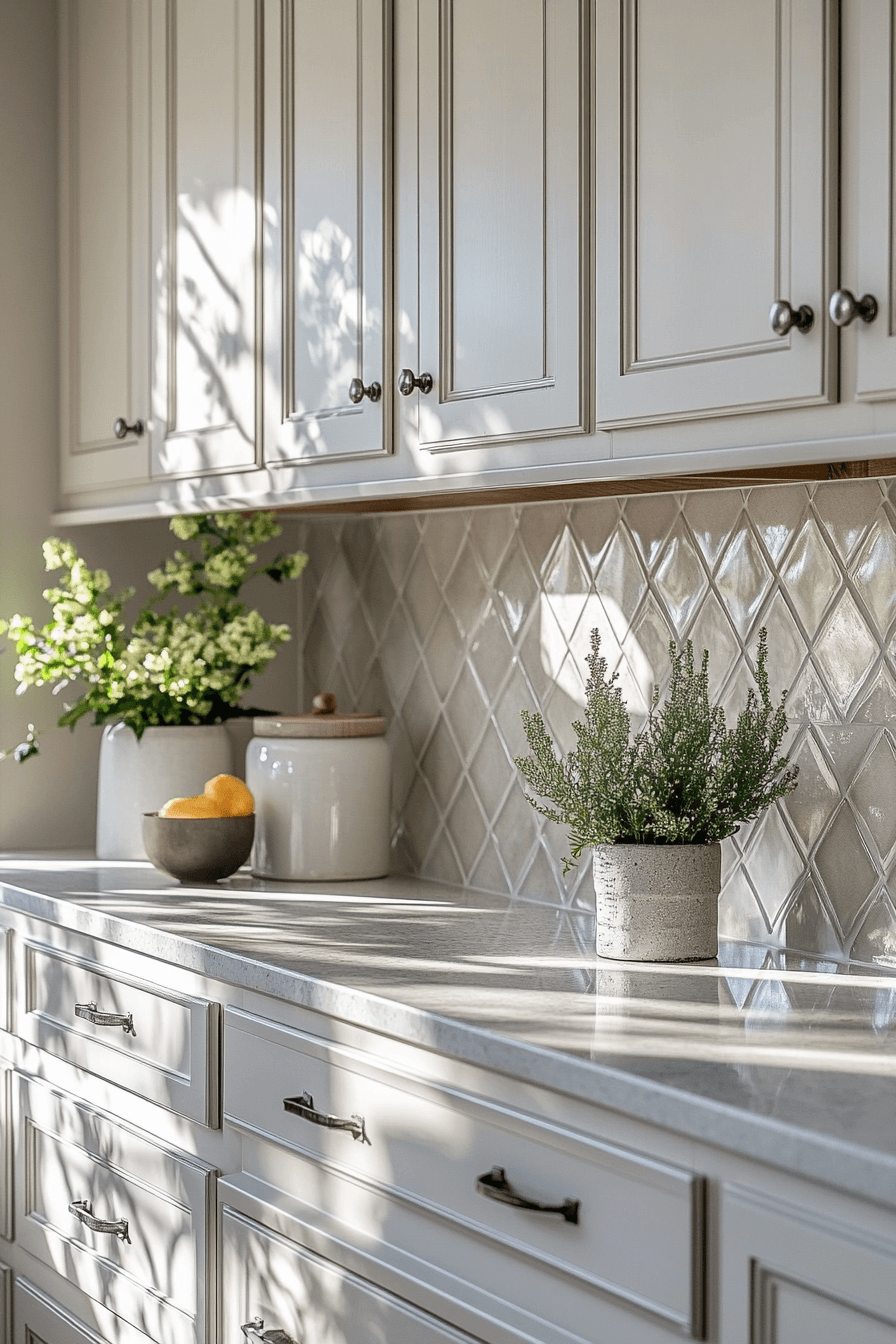 🚫 Avoid This: Avoid glossy finishes on surrounding surfaces that compete with the backsplash texture—matte cabinets and countertops let the dimensional tile remain the focal point.