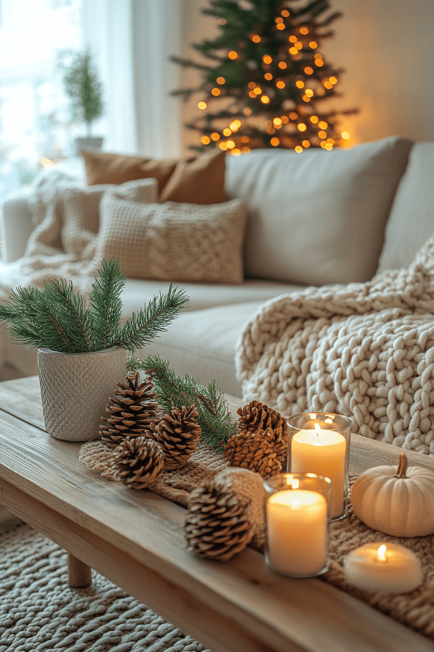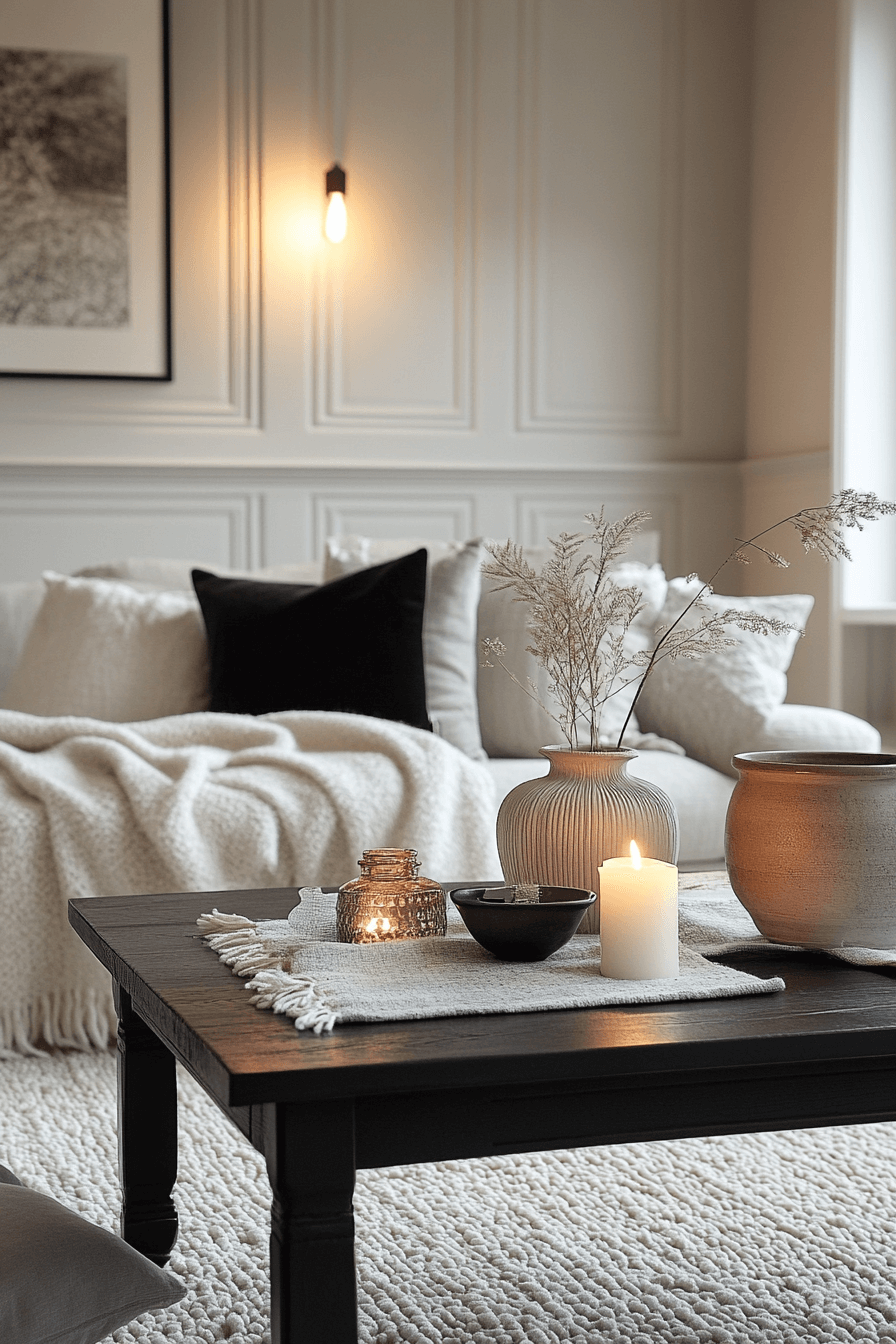 Scandinavian-inspired coffee table decor ideas emphasize warmth, simplicity, and functional beauty. Soft neutrals, natural wood, and cozy textures create effortless harmony. Candles, books, and minimal accents keep the table feeling intentional. This style feels calm and welcoming. It’s ideal for smaller or cozy living spaces.