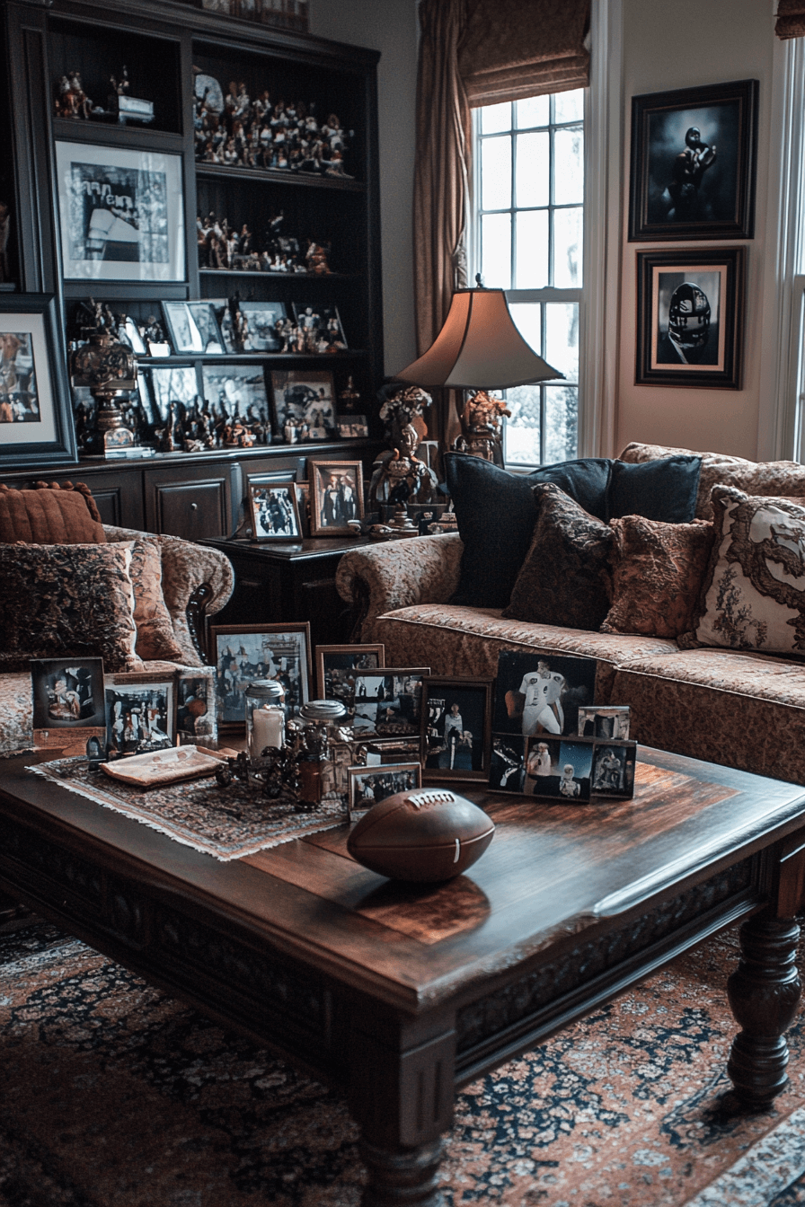 Sports-themed coffee table decor ideas allow personality and passion to shine through. Memorabilia, books, and subtle team accents create conversation starters. The display feels curated rather than cluttered. It’s a stylish way to celebrate your favorite teams. Perfect for fans and collectors.