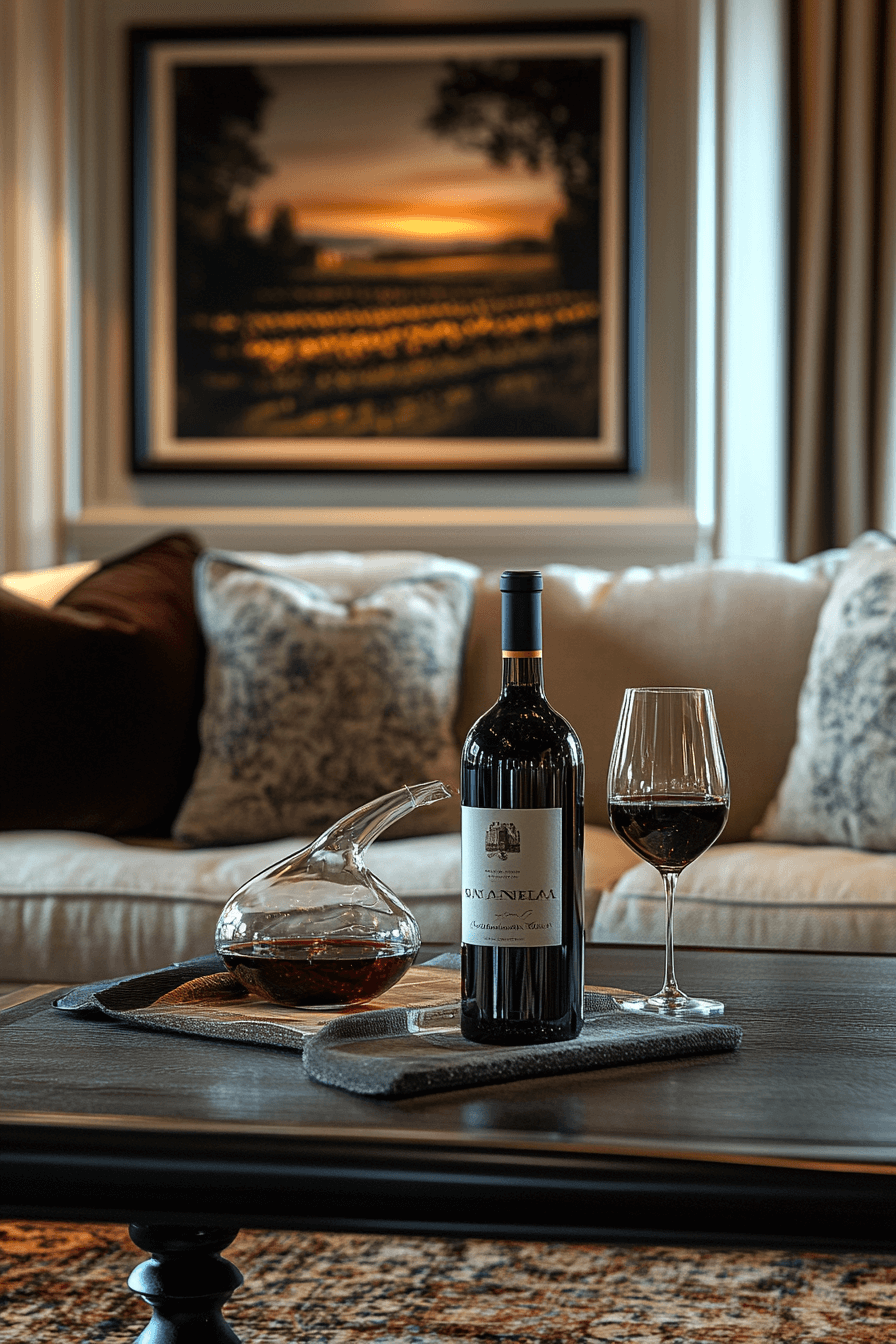 Wine-inspired coffee table decor ideas blend sophistication with entertaining appeal. Decanters, cork displays, and trays add refined charm. Paired with coasters and glassware, the setup feels welcoming. It’s perfect for hosting and relaxing. Stylish yet functional.