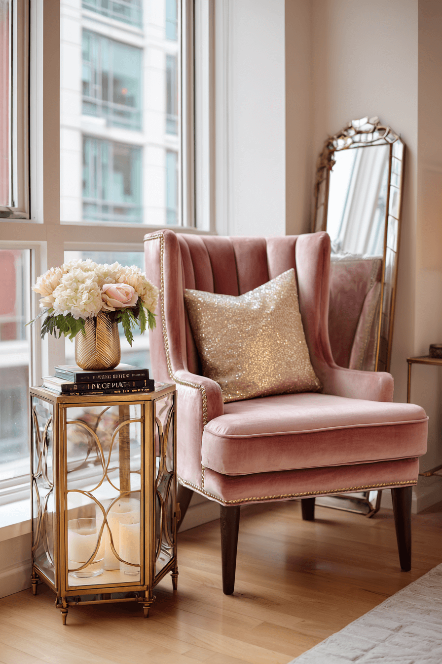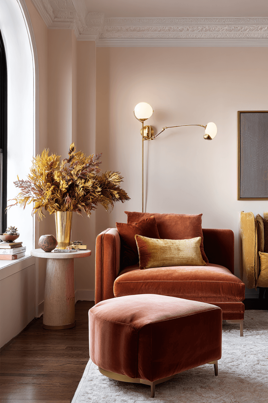 Antique brass paired with velvet instantly warms a cozy vintage apartment. Metallic sheen meets plush softness for contrast. The materials feel luxurious yet grounded. Small doses create impact without overcrowding. Soft lighting enhances their richness. Try this brass-and-velvet pairing in your apartment now.