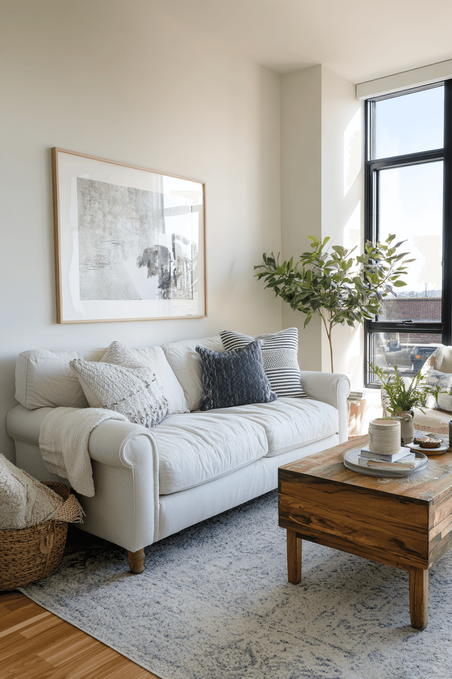 A contemporary vintage comfort mix pairs modern layouts with heirloom-inspired details for a beautifully balanced cozy vintage apartment. Imagine a sleek sofa beside a carved wood table layered with textured throws. The contrast between minimal structure and ornate touches creates richness and personality. Warm ambient lighting prevents the space from feeling formal. This method works wonderfully in apartments by maintaining practicality while embracing character. Discover how to blend modern and vintage seamlessly now.