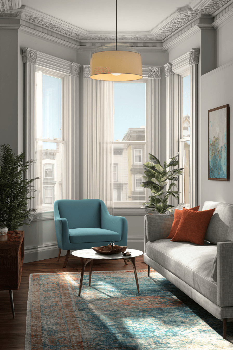 Historic charm refreshed blends preserved details with contemporary comfort inside a cozy vintage apartment. Clean-lined furniture offsets traditional features. Soft textiles maintain warmth. The balance feels seamless and current. Past and present live together effortlessly. Refresh historic charm in your space now.