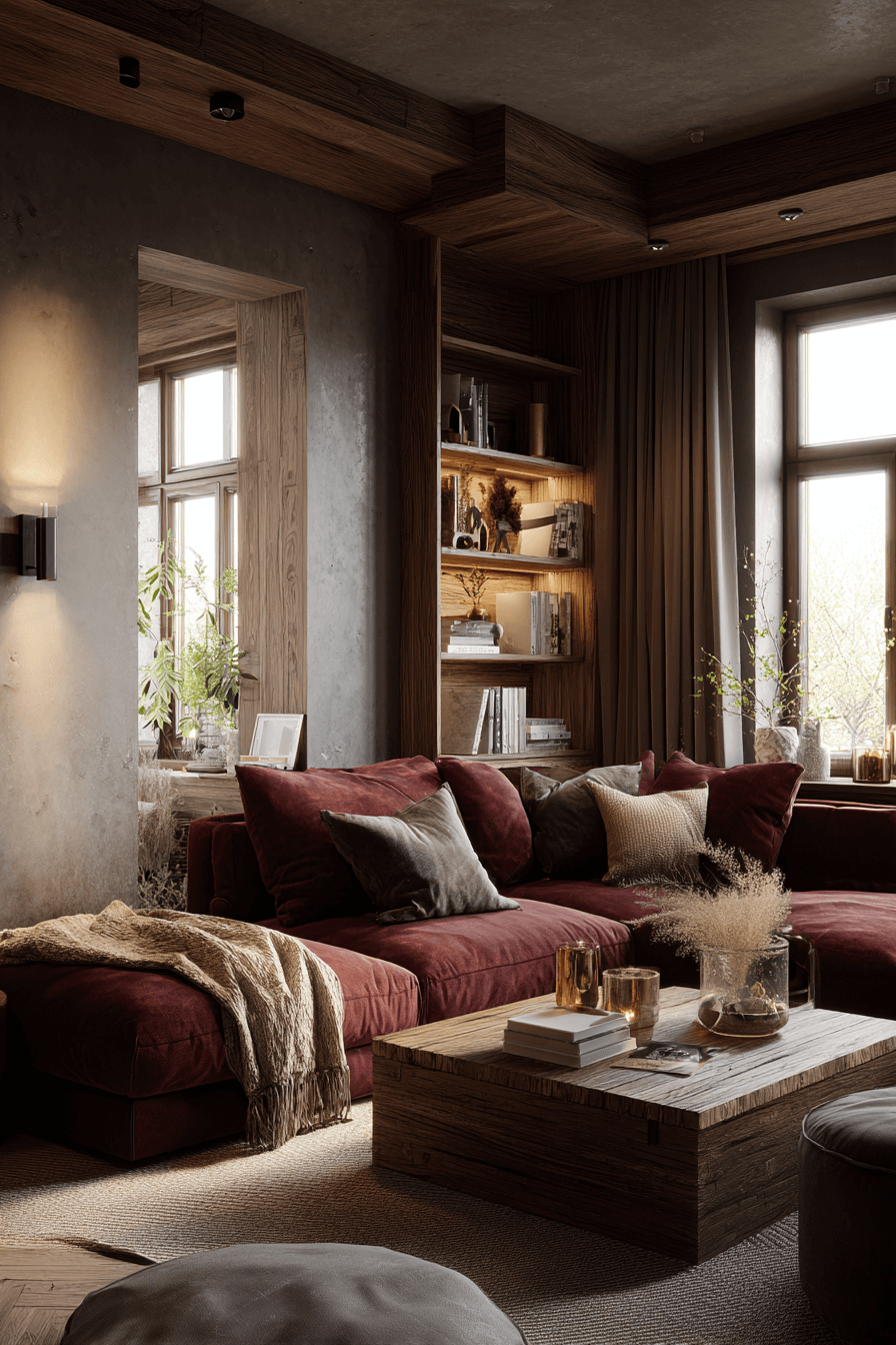 Velvet combined with warm wood creates a rich base for a cozy vintage apartment. Plush upholstery contrasts naturally with grain textures. The pairing feels elegant and comforting. The materials add depth without clutter. Warm lighting enhances their beauty. Style your apartment with velvet and wood today.