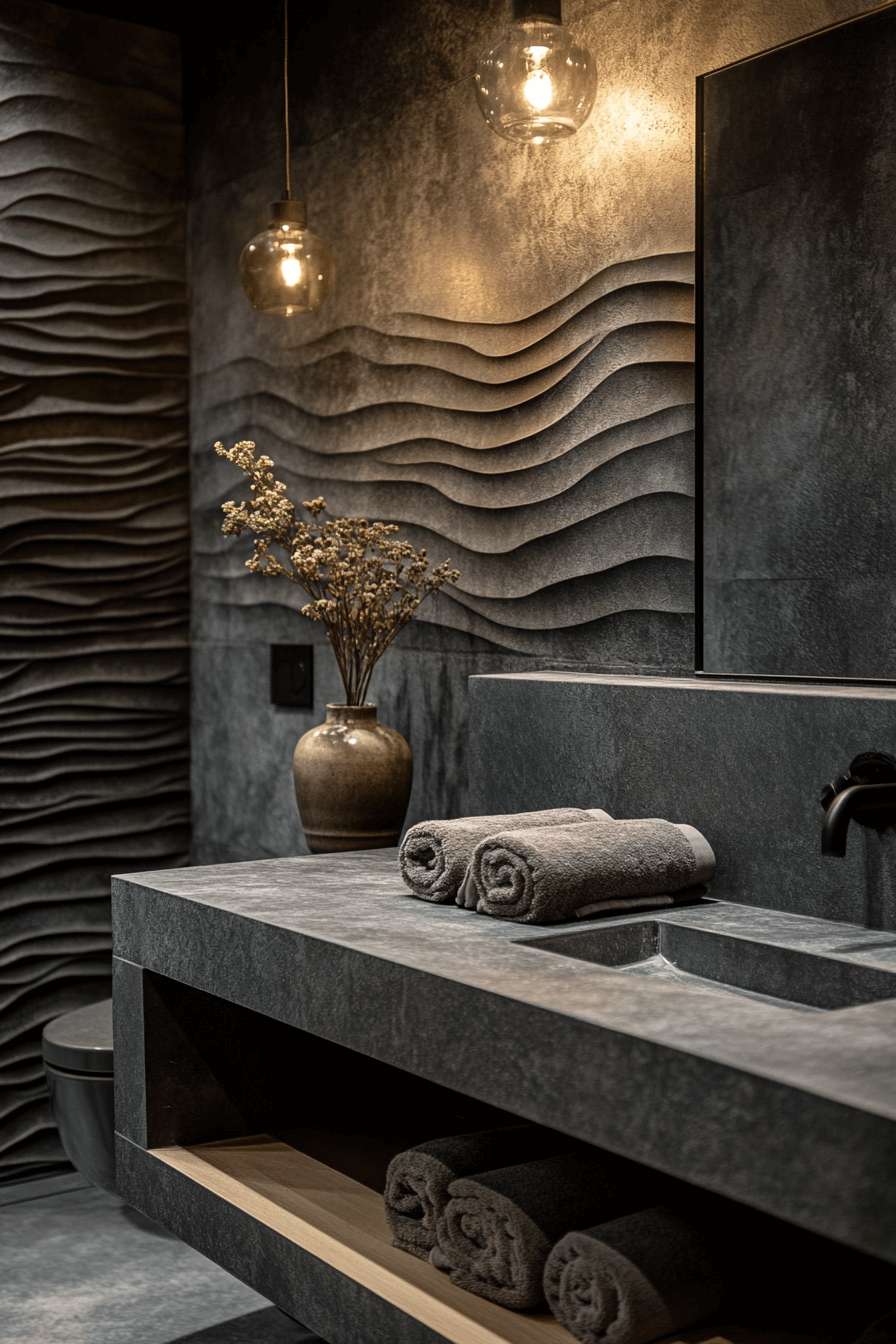 14. Textured Dark Grey Bathroom