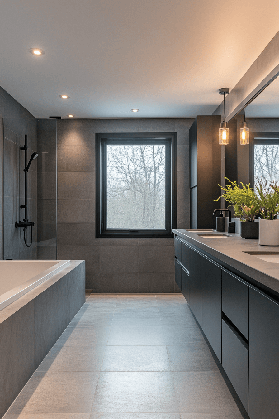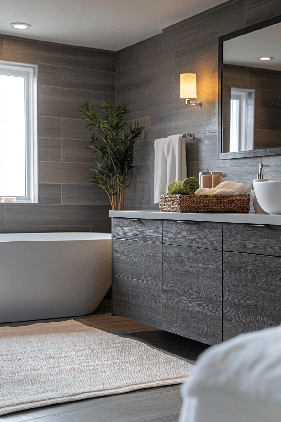 2. Sleek Charcoal Bathroom Retreat