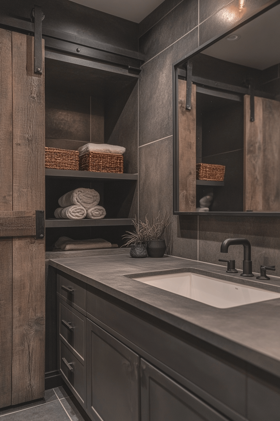 17. Serene Charcoal Bathroom Mood