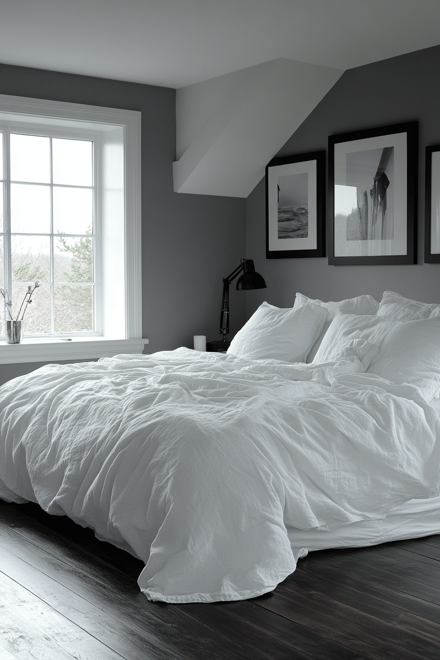 This balanced design blends crisp structure with cozy layers. A dark grey bedroom pairs beautifully with lighter greys for contrast. Clean furniture lines keep things modern while soft bedding adds comfort. The look feels fresh and timeless. Ideal for everyday living.