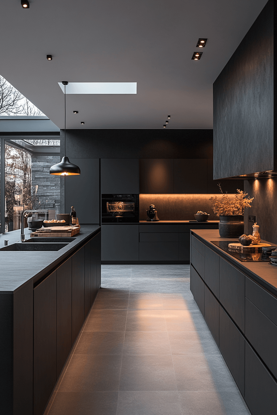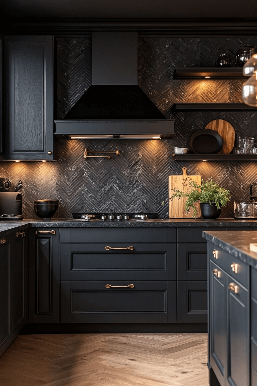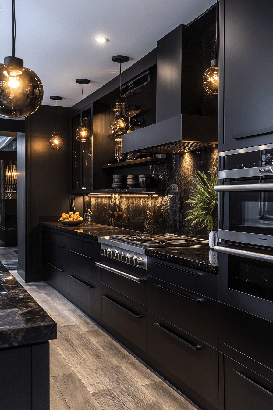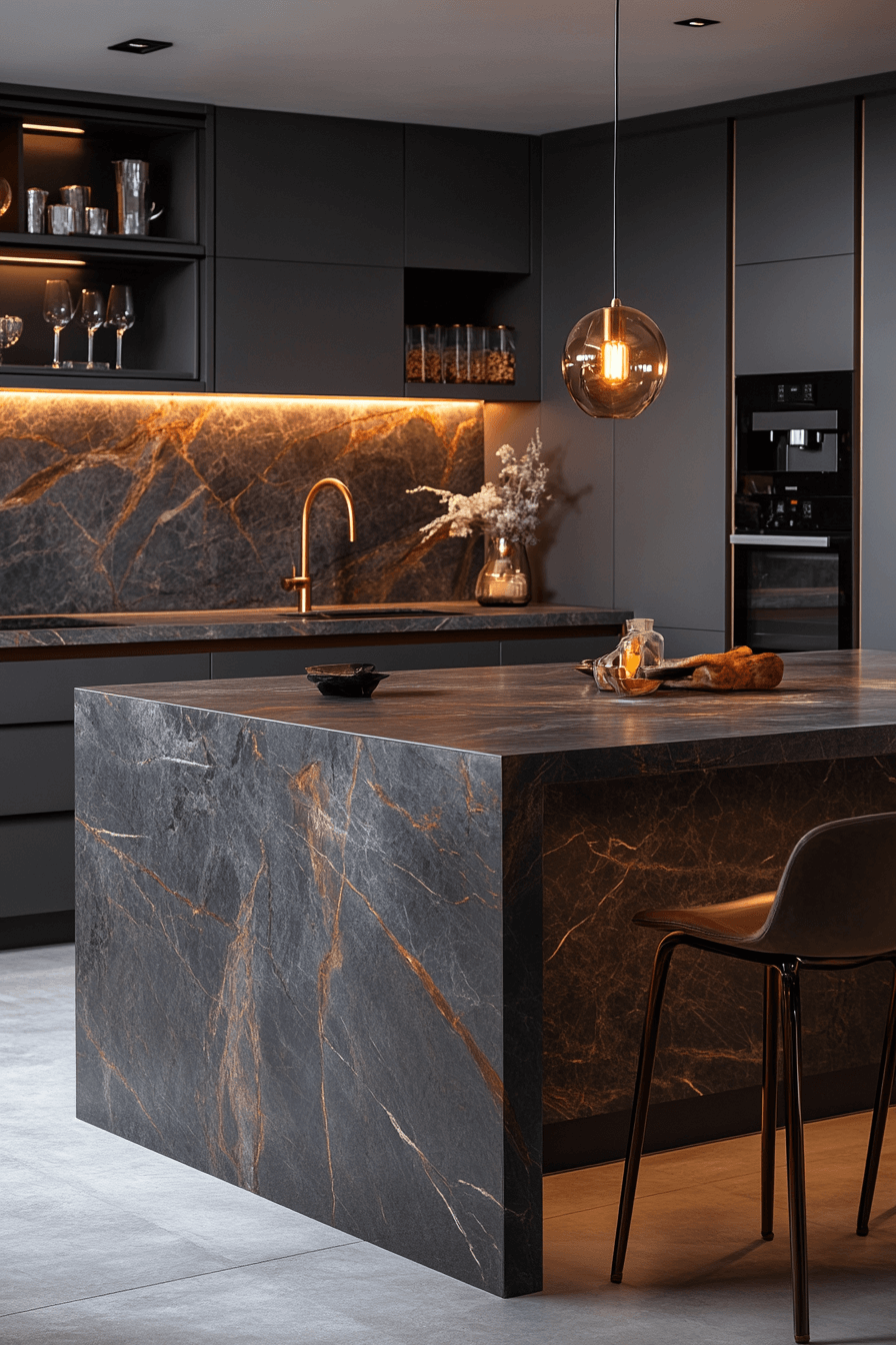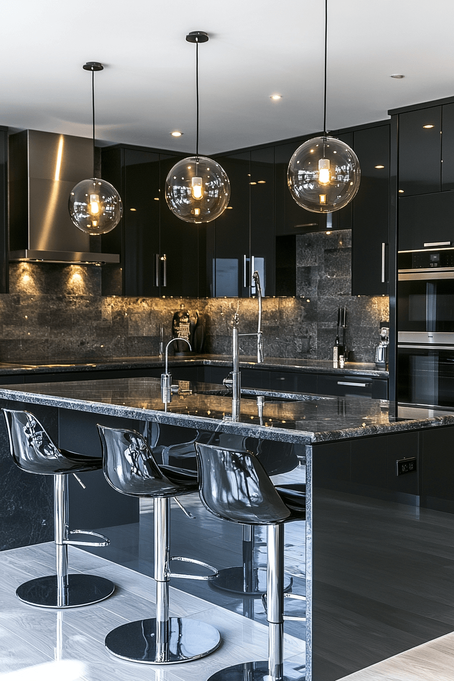 7. Glossy Charcoal Kitchen Glow