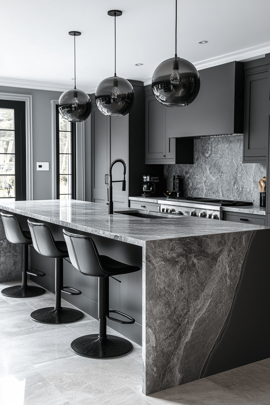27. Dramatic Dark Grey Kitchen