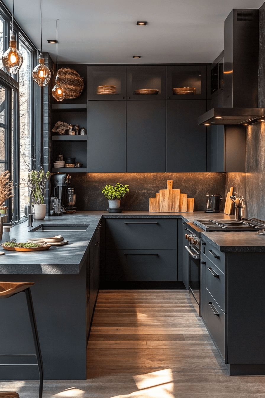 13. Cozy Charcoal Kitchen Mood