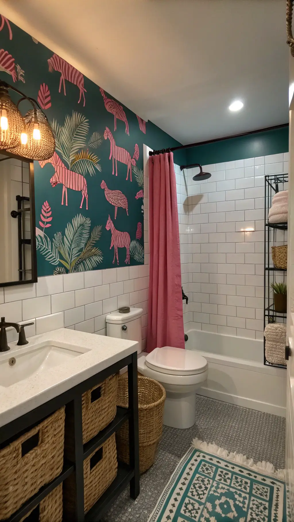 - Unexpected wall art (Think: Pink zebra in a bathtub)