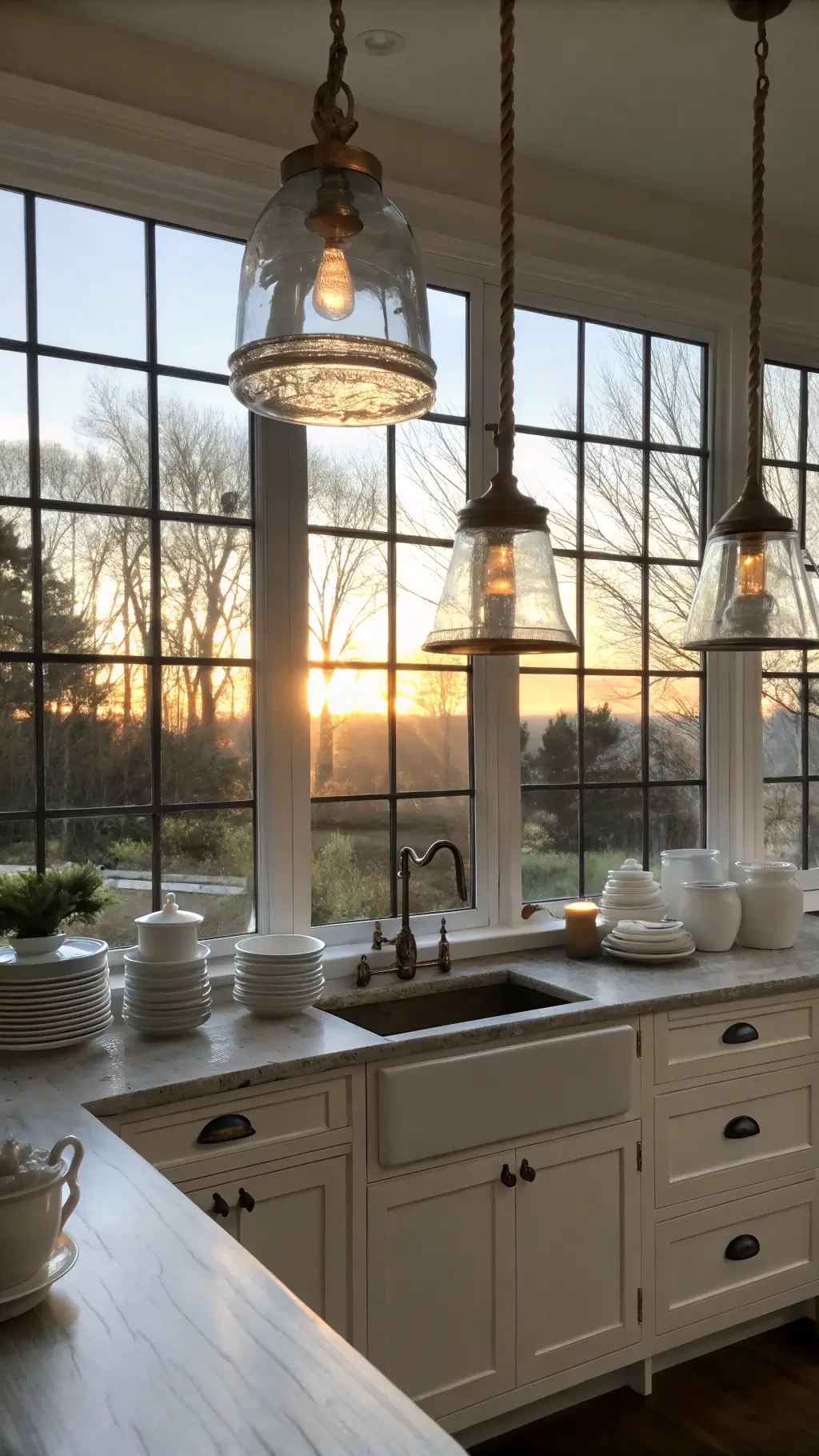 Farmhouse kitchen lighting isn’t just about illumination – it’s about creating an atmosphere. Every fixture tells a story, every shade creates a mood.