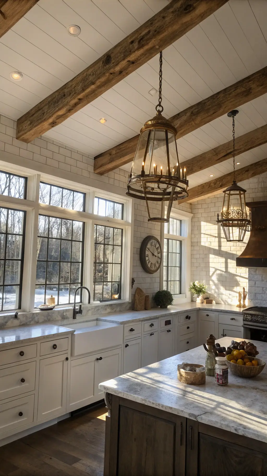 Farmhouse kitchen lighting isn’t just about illumination – it’s about creating an atmosphere. Every fixture tells a story, every shade creates a mood.