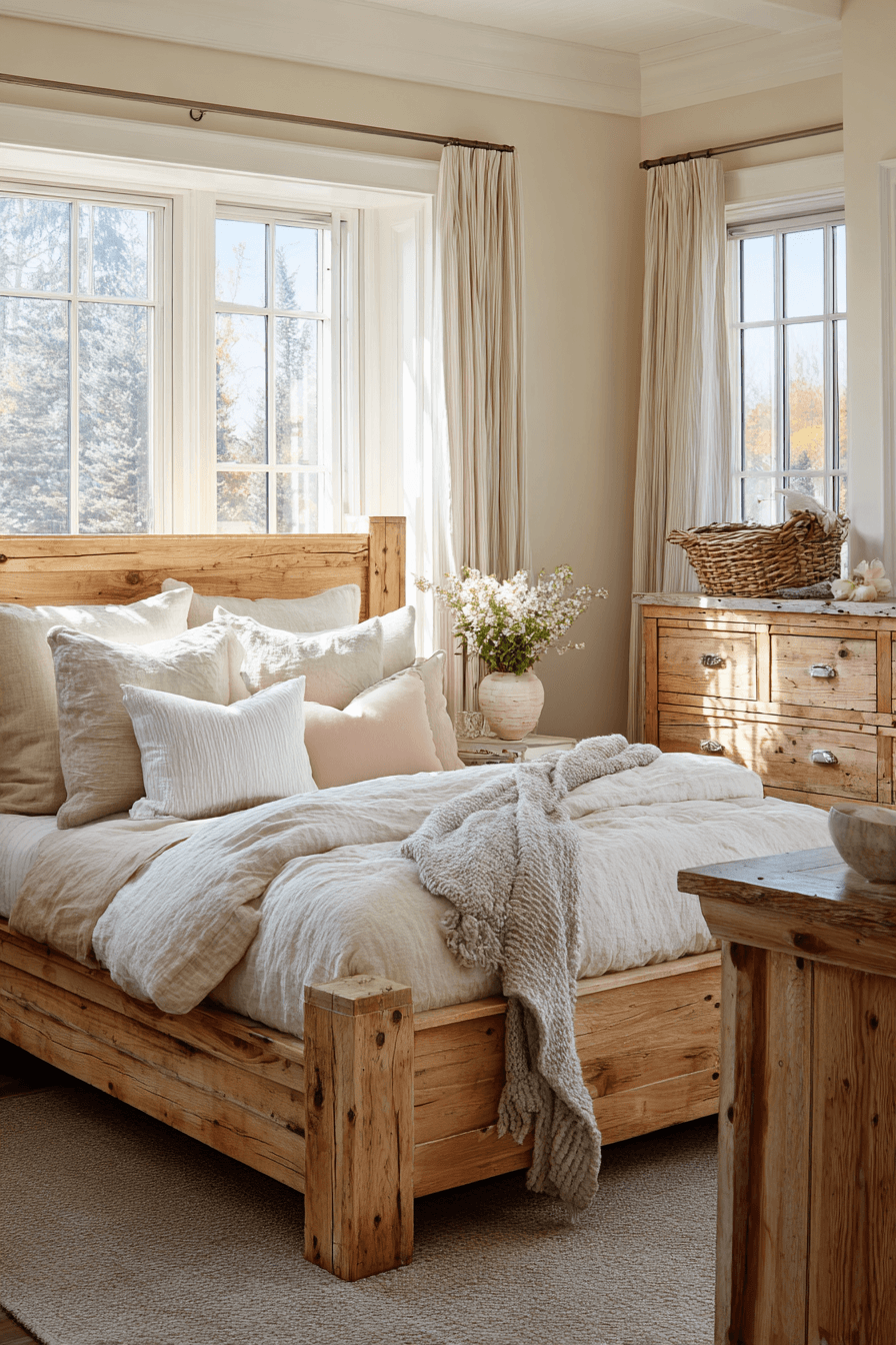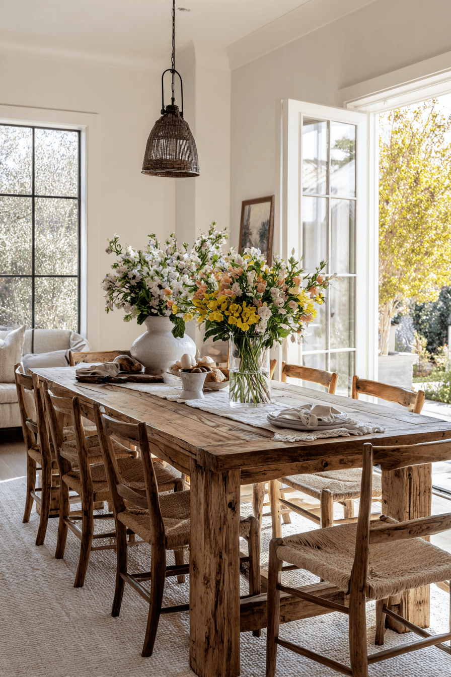 Light wood finishes refresh farmhouse spring home decor ideas by creating a brighter, more open atmosphere. Pale tones reflect natural light and soften the overall look of a room. These pieces pair easily with fabrics and seasonal decor. The result feels relaxed and welcoming without losing structure. Even one or two accents can shift the entire vibe. Refresh your home with farmhouse spring home decor ideas featuring light wood!