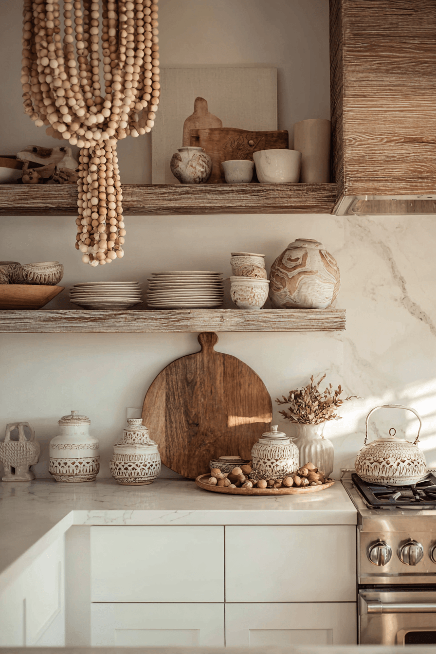 Wood bead garlands add subtle detail to farmhouse spring home decor ideas with their relaxed, decorative style. Draped across shelves or tables, they bring texture without clutter. Soft tones keep the look light and seasonal. These pieces pair well with almost any rustic accent. Small additions like this elevate the overall design. Add finishing touches with farmhouse spring home decor ideas that feel effortless!