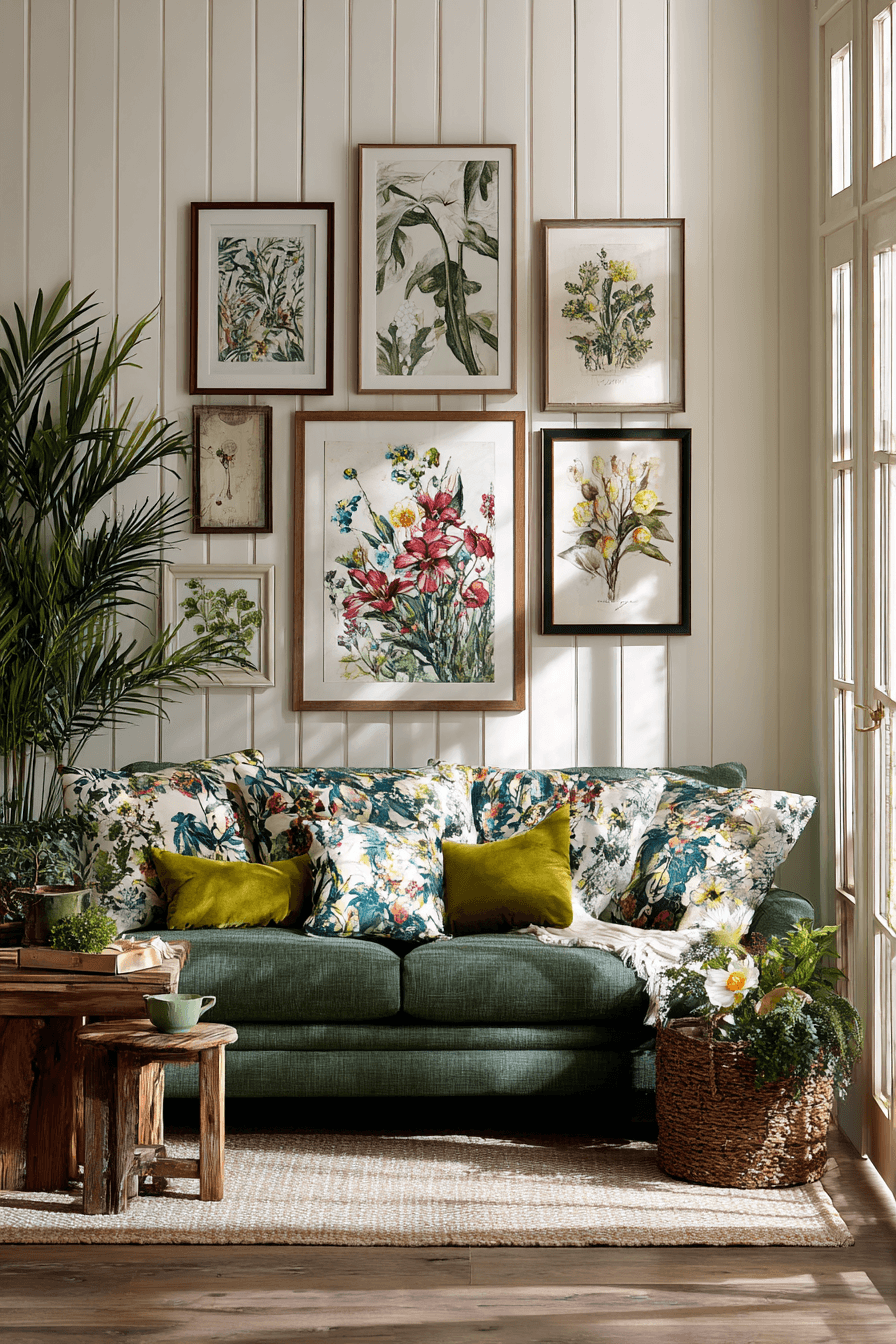 Botanical artwork brings nature indoors through farmhouse spring home decor ideas that feel fresh and calming. Floral or greenery prints add color without overwhelming the space. Paired with neutral tones, they keep the design soft and cohesive. These pieces brighten walls instantly. The result feels peaceful and inviting. Refresh your walls with farmhouse spring home decor ideas inspired by nature!